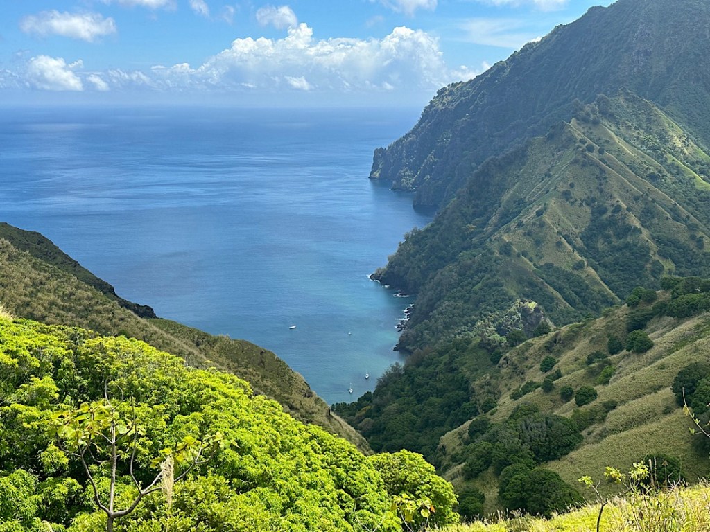 Allerdings ist Tahuata eben eine Ausnahme von dieser Regel in den Marquesas. An der Südspitze noch komplett kahl, steil und fast schwarz, fällt die Westküste von Tahuata nach Norden hin immer sanfter zum Meer hin ab und bietet sogar ein paar der für die Marquesas so wenig typischen hellen Sandstrände.