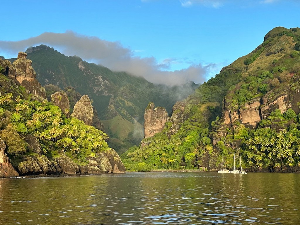 Die Baie Hanamoenoa wird deshalb immer wieder mal als schönste Bucht der Marquesas bezeichnet. Schön ist sie unzweifelhaft. Aber dieser Superlativ scheint uns dann doch nicht gerechtfertigt, denn eigentlich ist es etwas anderes, was die Marquesas ausmacht. So wie zuletzt eben auf Fatu Hiva in der beeindruckenden und mit ihren speziellen Felsformationen eben auch sehr spektakulären Baie Hanavave. Einzigartig. Besonders. Und ganz klar Marquesas.