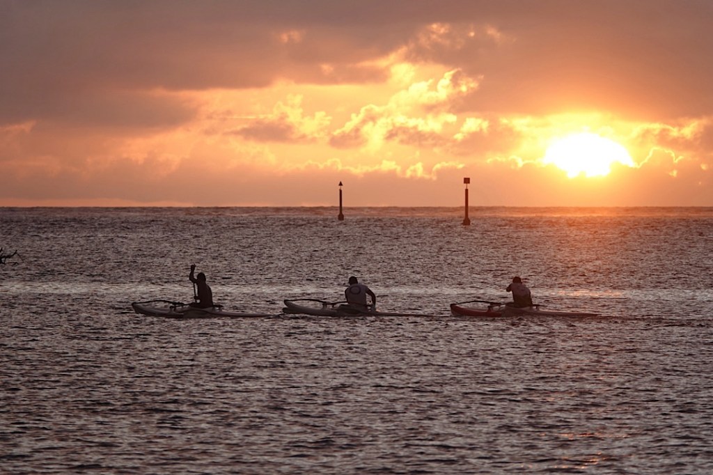 Jeden Morgen und jeden Abend wird die Flora umschwärmt von diversen Auslegerkanus. Die Tradition des Sports mit diesen typisch polynesischen Gefährten hatten wir zuerst in Hawai’i kennengelernt, auf den Inseln in Französisch Polynesien wird sie aber genauso intensiv weitergeführt, zumeist mit ultraleichten modernen Auskegerkanus, die aber eben doch mit ihren Auslegern traditionelle Technik weiterführen.