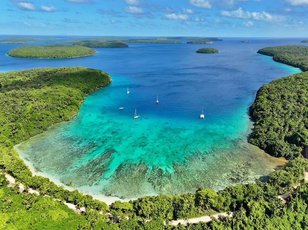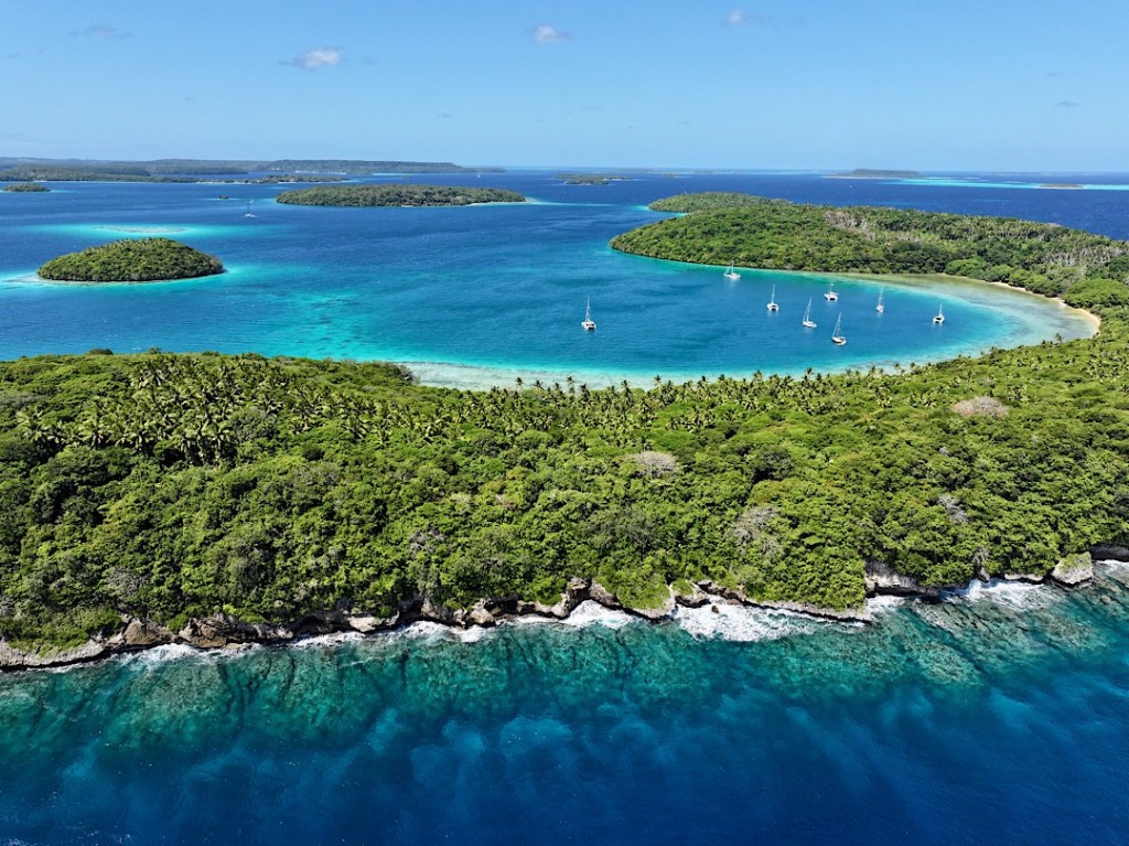 Beim Drohnenflug am nächsten Morgen können wir über unsere Bucht hinweg schon mal einen Blick auf unser nächstes Ziel werfen, die im Osten liegenden „Outer Islands“.