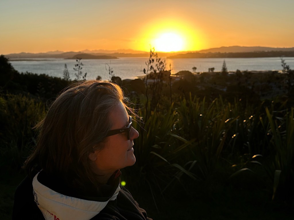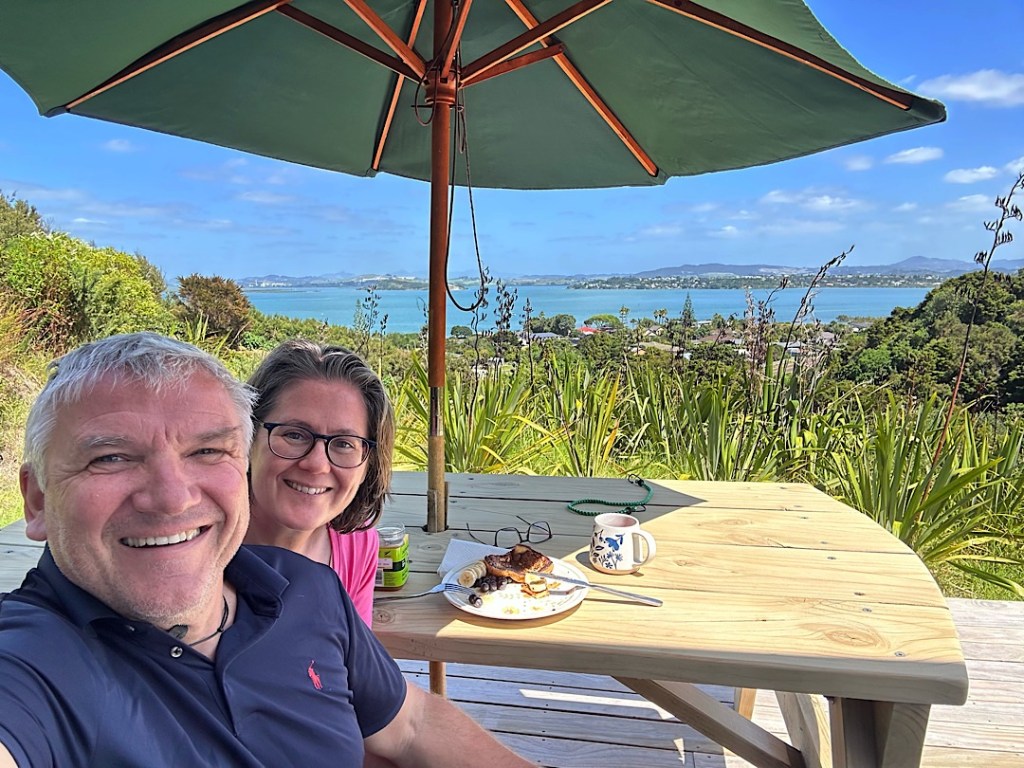 Zur „Arbeit“ fahren wir übrigens von unserem neuen AirBnB aus, das diesmal im Nordosten von Whangārei im Örtchen Tamaterau liegt. Zwar müssen wir bei der Anfahrt eine steile und enge Schotterpiste bewältigen, dafür ist die Aussicht aber phantastisch:
