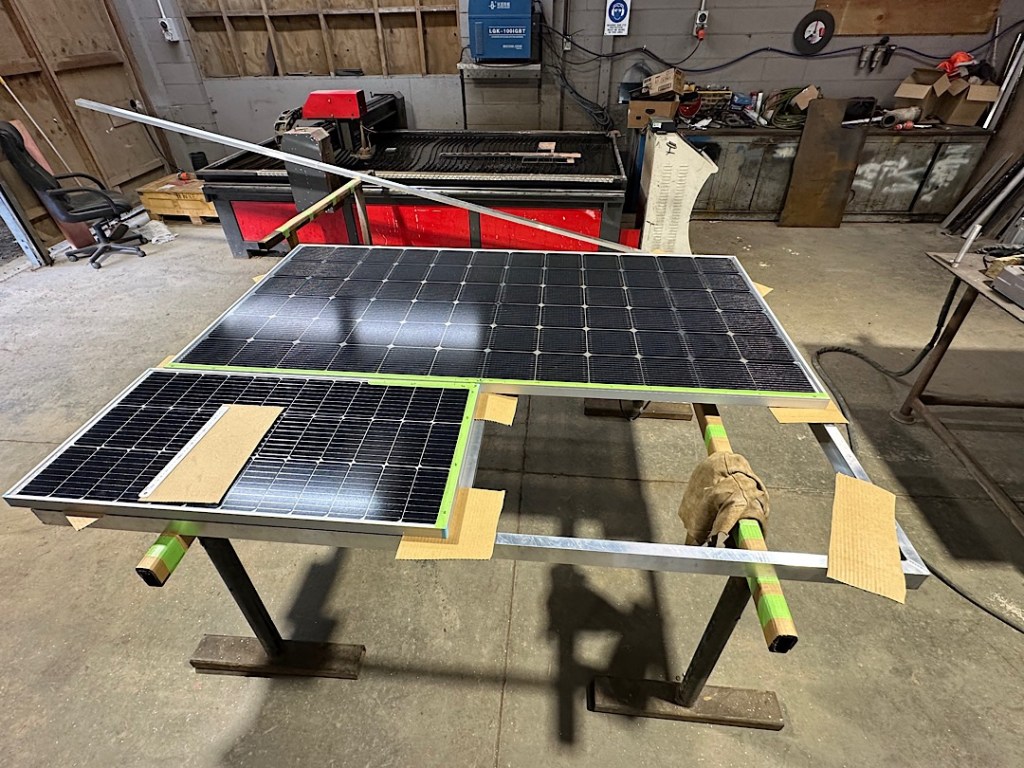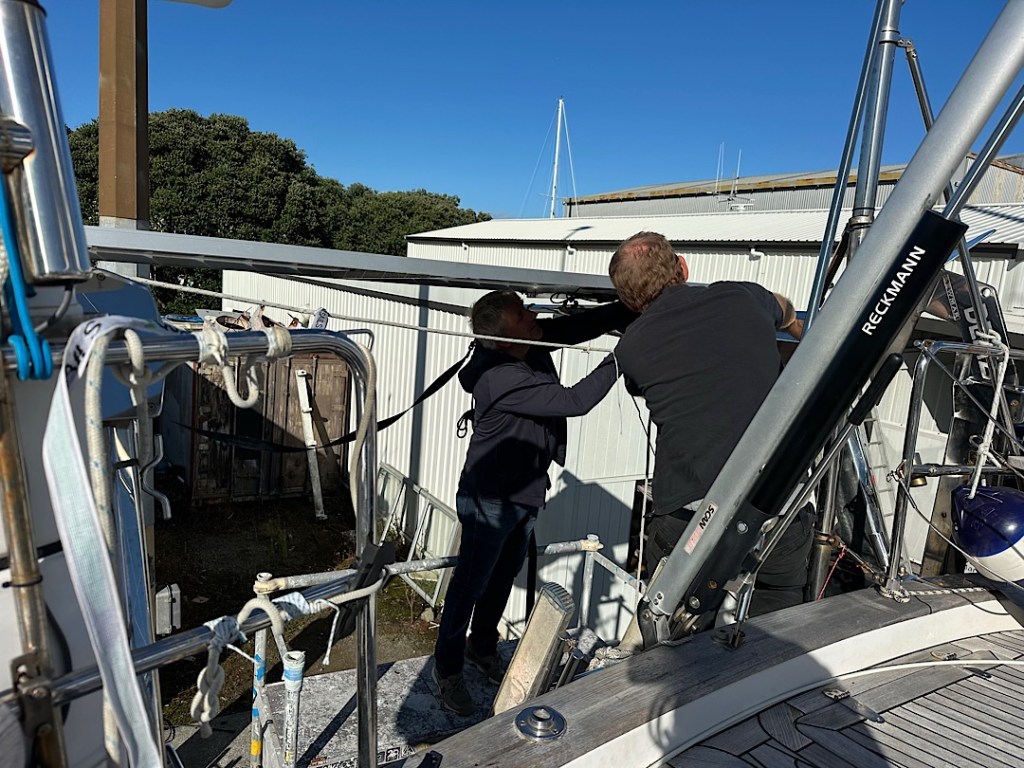 Die Woche begann aber sowieso schon gut. Endlich kommen die Alu-Schweißer vorbei. Gemeinsam bauen wir das Solarpanel und dessen Träger von den Davits ab. Sie nehmen die (zusätzlichen) beiden neuen Solarpanel ebenfalls mit und machen sich ans Werk für den beauftragten neuen Halterahmen.