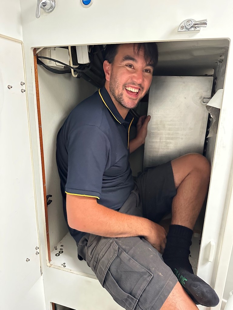 Nein, weder mit den Nerven, noch mit der Bootsarbeit. Eigentlich wollten wir ja schon unterwegs sein und jetzt mit Auto Neuseeland zu bereisen, aber das muss noch warten. Ich hätte erwartet, dass uns Verzögerungen bei den Bootsprojekten mehr stressen würden, aber erstaunlicherweise macht es uns bisher gar nichts aus. Wir machen es uns heimisch im mittlerweile dritten AirBnB in und um Whangārei, erkunden die Umgebung und treiben die Bootsprojekte voran. Als wir beim Wechsel zwischen unseren Unterkünften einen Tag überbrücken müssen und dafür auf die Flora ziehen, hat das einen erstaunlichen Nebeneffekt. Unser Handwerker fühlt sich motiviert, das temporäre Chaos auf Flora zu verringern und dafür sogar am Wochenende zu arbeiten.