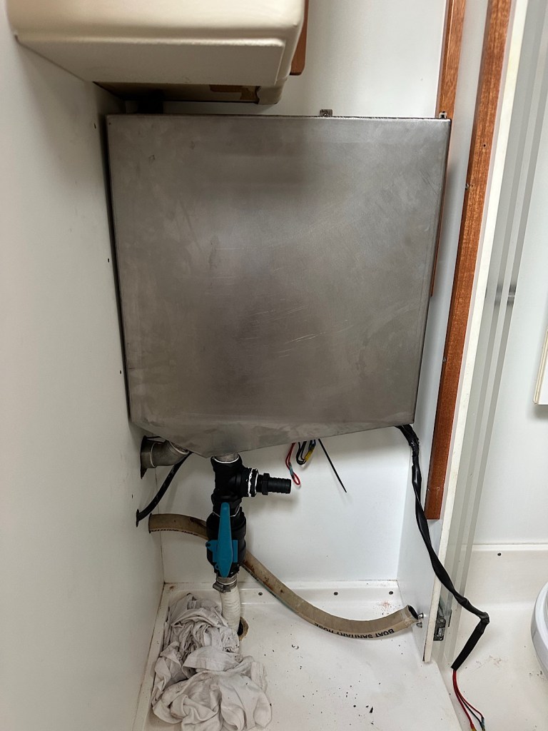 Grausgruselig sieht es um die Edelstahl-Holdingtanks aus. Der Schwarzwassertank der achteren Toilette hatte ja an einer Schweißnaht nadelfeine Löcher entwickelt, mit entsprechend unangenehmen Begleiterscheinungen. Gegen den Ausbau wehrt er sich lange aber am Ende vergeblich. Die Naht neu zu schweißen oder einige Bleche zu verstärken erweist sich als nicht sinnvoll, wir lassen einen Ersatztank bauen. Sicherheitshalber bauen wir auch den vorderen Holdingtank aus und lassen ihn prüfen. Von außen sieht er noch gut aus, aber die Bleche sind von innen ebenfalls stark korrodiert und extrem dünn geworden. Also wird auch diese tickende Zeitbombe mit einem neuen Tank entschärft, außerdem werden bei beiden Tanks auch die Schläuche und Ventile erneuert. Das beschäftigt uns und unsere Handwerker länger als erwartet, aber der Teufel steckt wie so oft im Detail.