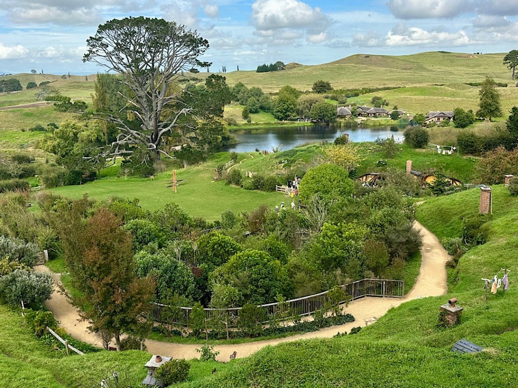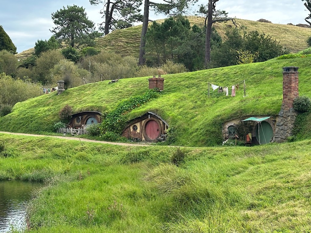 Hobbiton? Auf Deutsch „Hobbingen“ genannt, ist es der bekannteste Drehort der Verfilmungen von J.R.R. Tolkiens „Herr der Ringe“-Triologie und der „Hobbit“-Geschichten. Quasi das Auenland in Mittelerde, mitten auf der Nordinsel Neuseelands, wo sich die wollfüßigen Halblinge hinter die runden Türen ihrer in die sanften Hügel gebauten Miniaturen-Häuser zurückziehen, wenn sie nicht auf der Festwiese oder im „Grünen Drachen“ ordentlich feiern.