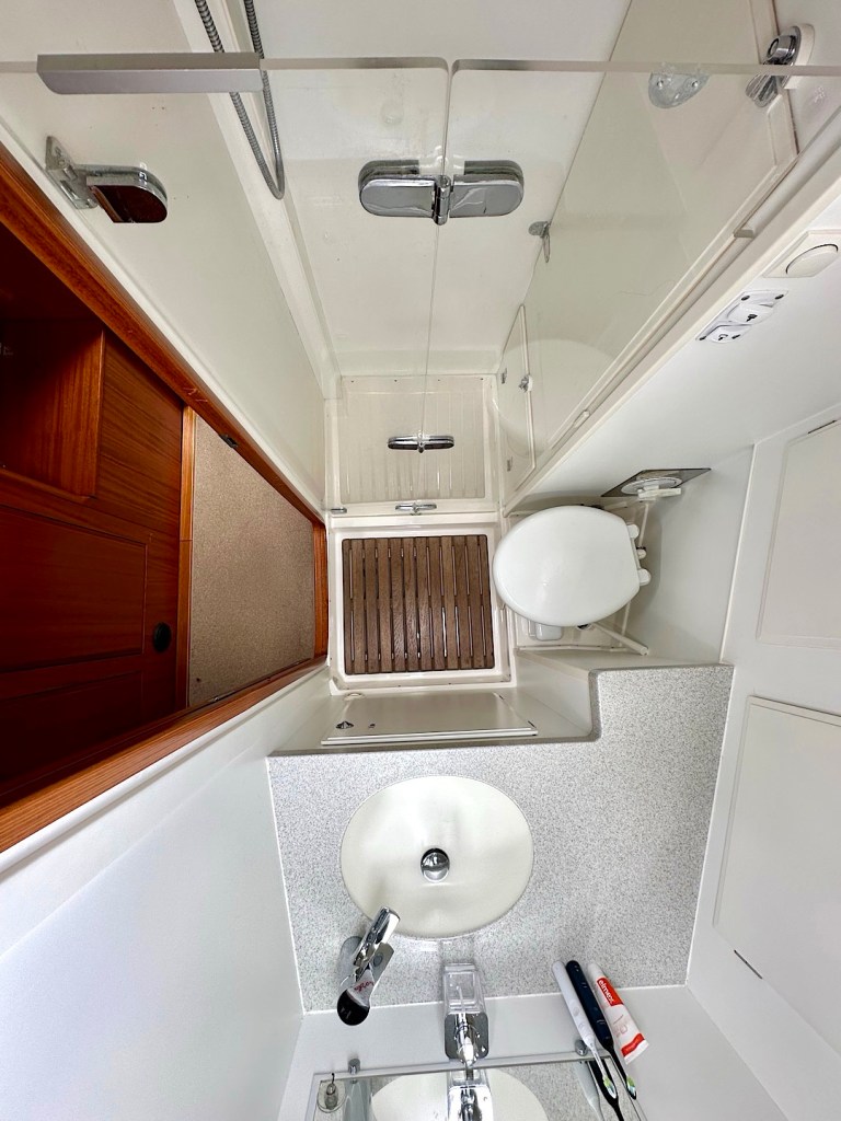 Leider Murmeltiertag. Frühmorgens rein, erneut ein undichtes Seeventil feststellen, gleich wieder raus. Wieder ist das Seeventil des achteren WC-Auslasses undicht. Es ist wirklich kaum zu erreichen, im Motorraum eingezwängt zwischen dem Volvo, dem vom Vorbesitzer eingebauten Generator sowie dessen Seeventil nebst Schläuchen und dem Schott zum Bad. Jetzige Diagnose: wahrscheinlich war deshalb beim Einbau (für Dienstag) das Seeventil schief auf den Borddurchlass gesetzt. Damit wurde das Gewinde des TrueDesign-Borddurchlasses verletzt, das neue Seeventil (für Mittwoch) konnte also wieder nicht dichten. Der Borddurchlass muss ganz raus (also auch neues Coppercoat Antifouling drauf). Akkordarbeit für die Handwerker und neuer Krantermin am Donnerstag.