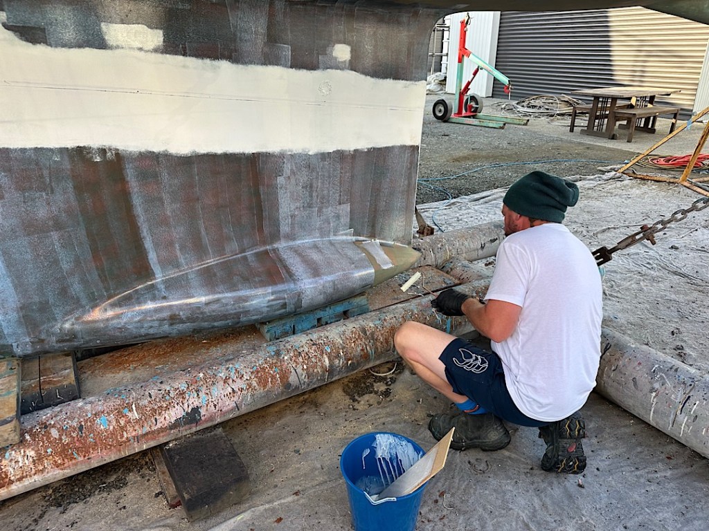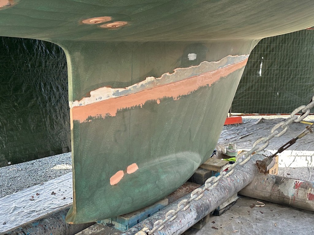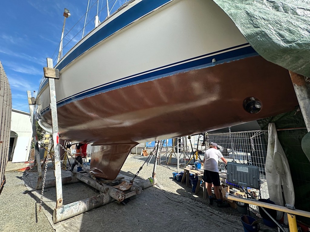 - Unterwasserschiff komplett überarbeitet, Schadstellen heruntergeschliffen und neu aufgebaut, über alles eine Epoxi-Sperrschicht und 5 neue Schichten Epoxi-Coppercoat