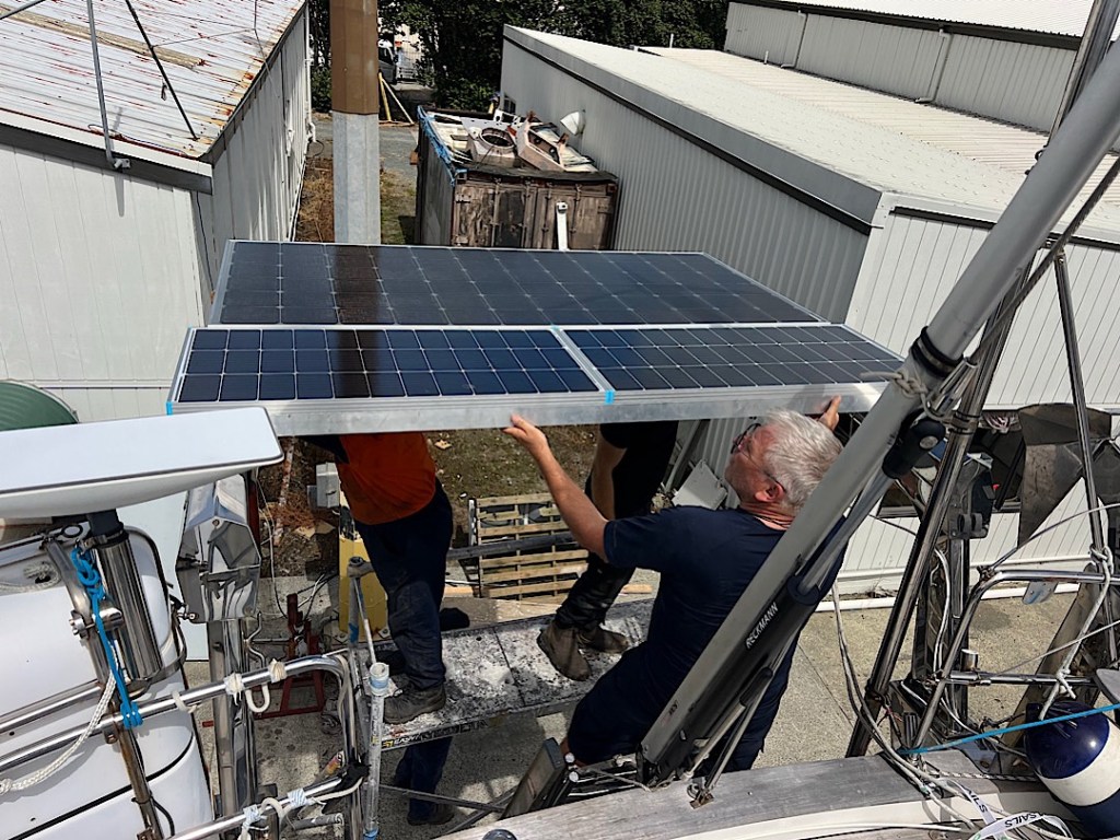 - Solarpanel: zwei zusätzliche Panel je 100 Wattpeak auf den Davids (zusätzlich zu dem 430 WP Panel, dafür neuen Aluminiumrahmen schweißen lassen. Zwei der vier 100 WP Panel auf dem Bimini erneuert