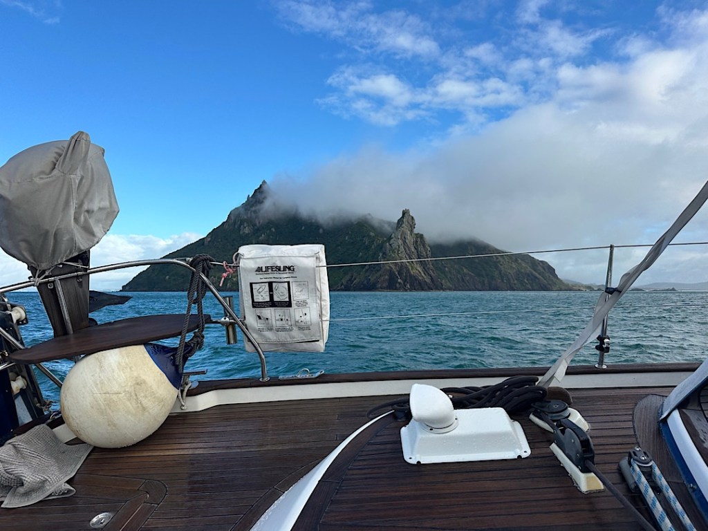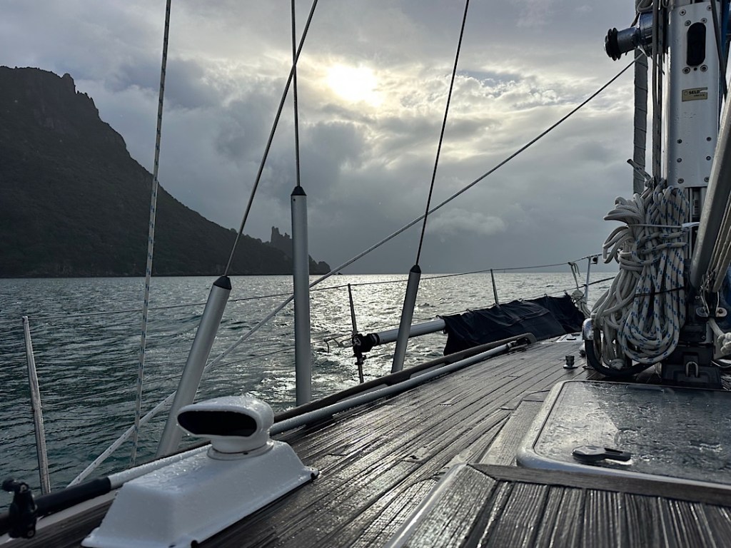 Whangārei Harbour verabschiedet uns mit einem kräftigen Schauer, aber als wir die Whangārei Heads passiert haben, klart es dann auf.