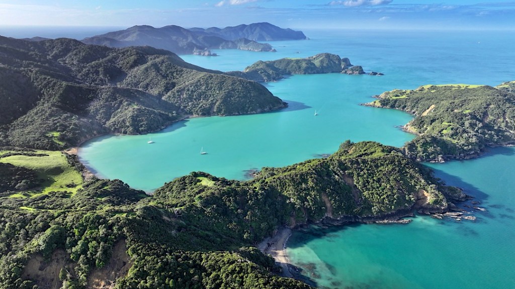 Und so sieht unsere erste Ankerbucht aus, die Urupukapuka Bay: