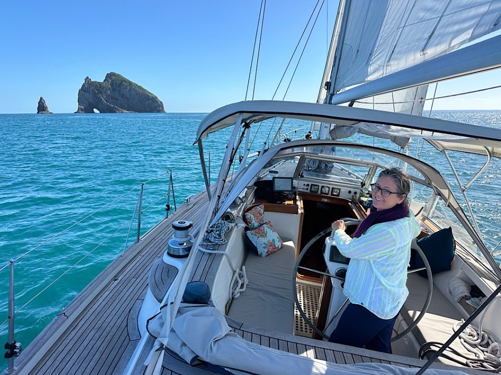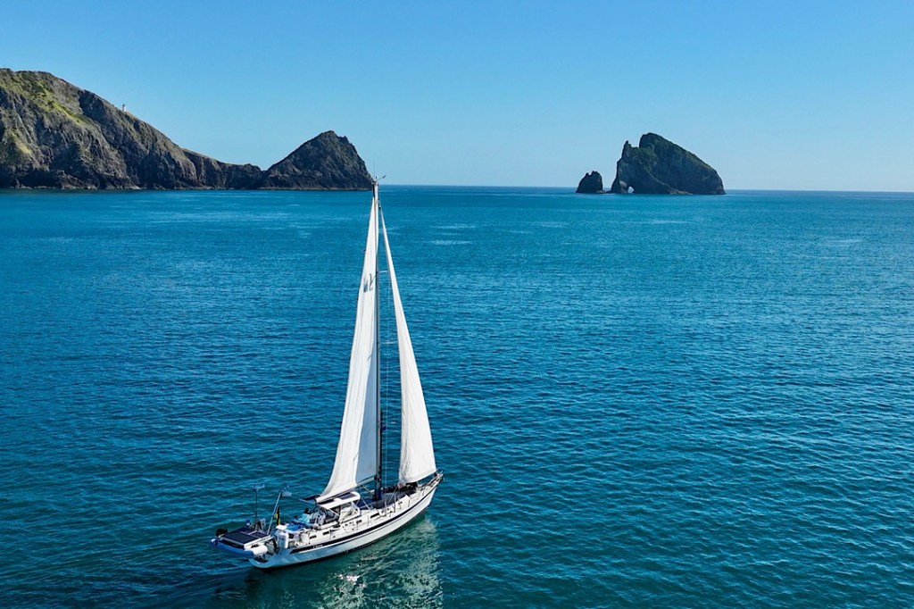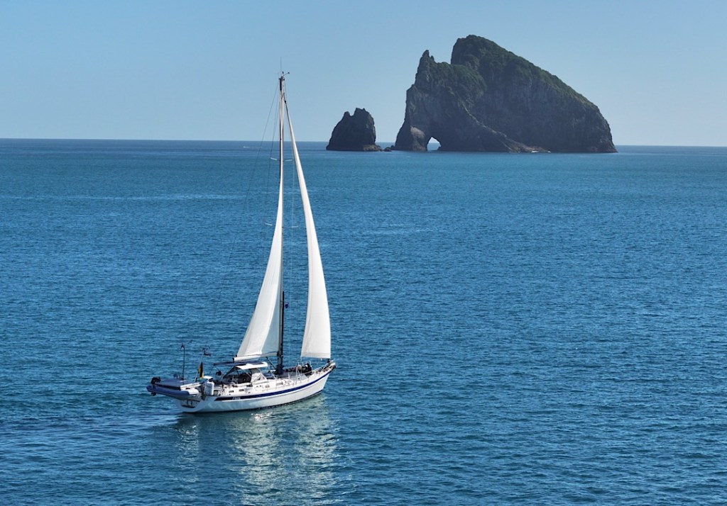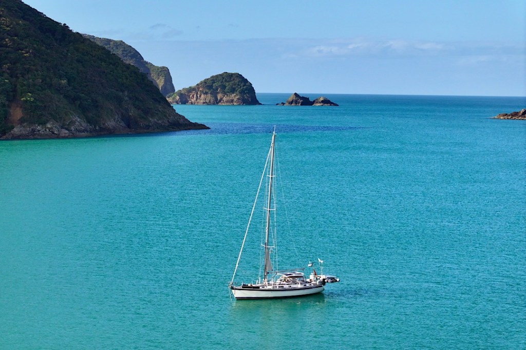 Und so wird es ein richtig schöner Segeltag. Zwar segeln wir meist hoch am Wind an der Ostküste hinauf, aber wegen des ablandigen Windes baut sich keine starke Welle auf. So war das geplant, fein, wenn es auch eintrifft. Unser Tagesziel ist die gut 52 Seemeilen entfernte Bucht Whangamumu.