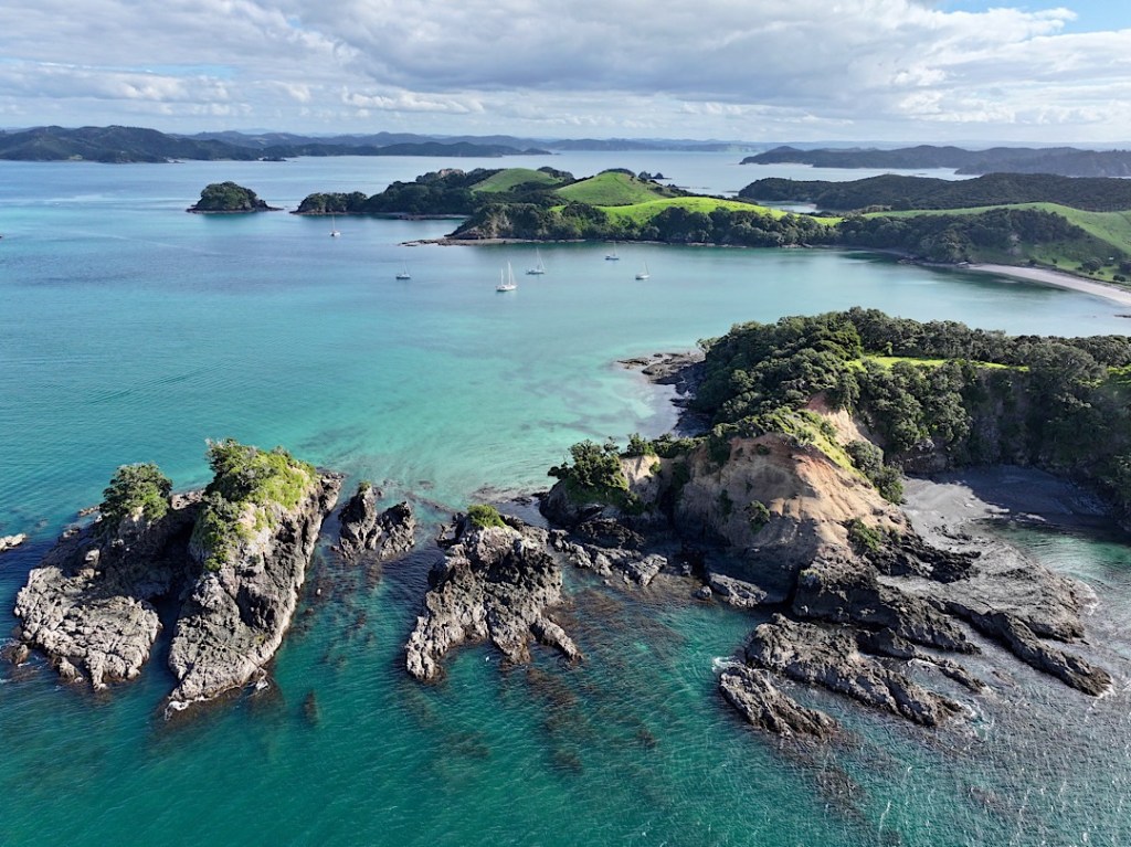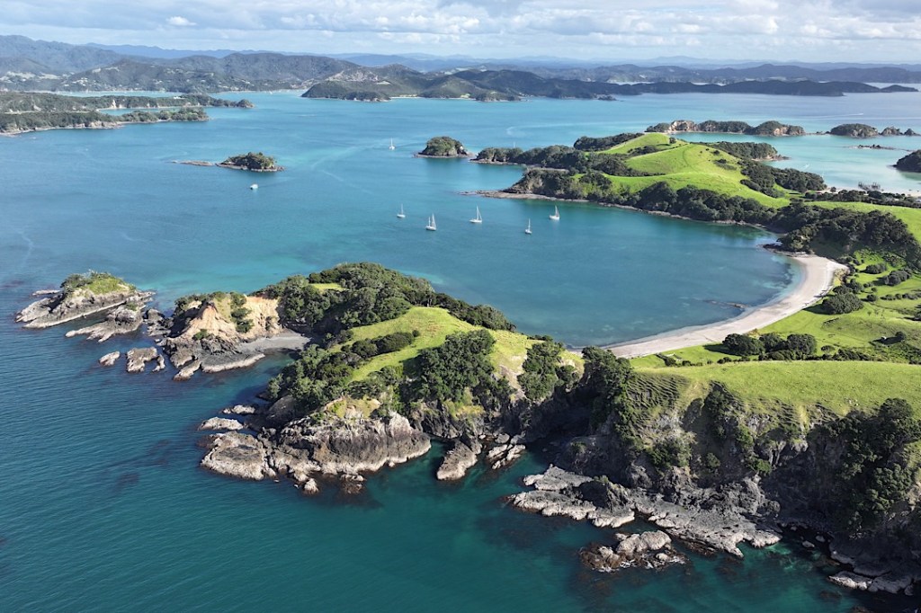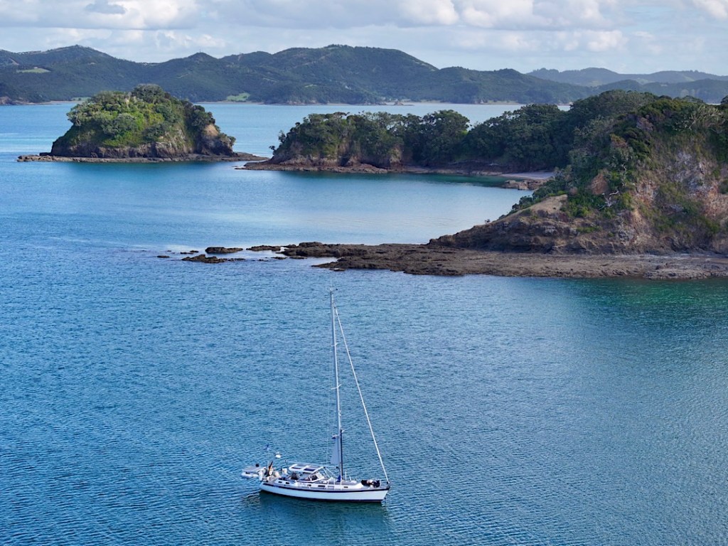 Eines der beliebtesten und bekanntesten Segelreviere Neuseelands ist die „Bay of Islands“ an der Nordostküste der Nordinsel. Etwa 20 km schneidet sie ins Landesinnere hinein, wird dabei bis zu 16 km breit. Trotz dieser überschaubaren Ausmaße weist sie offiziell 144 Inseln auf. Bei dieser Zählweise müssen offenbar neben kleinsten Inselchen auch größere Felsen eingeflossen sein. Dennoch bieten sieben größere Inseln und eine Vielzahl sich vom Festland in die Bucht hinein erstreckender Halbinseln so viele Buchten und damit Ankerplätze, dass sich bei jeder Windrichtung ein geschütztes Plätzchen finden lässt.
