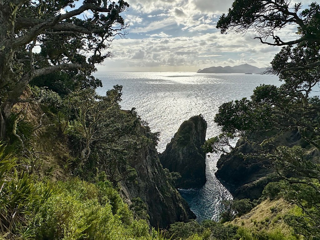 Wir segeln sogar einen Kringel um die unverkennbare Landmarke am Cape Brett, das von uns so getaufte halbversunkene Mammut (die Insel Motukokako, besser bekannt als „Hole in the Rock“).