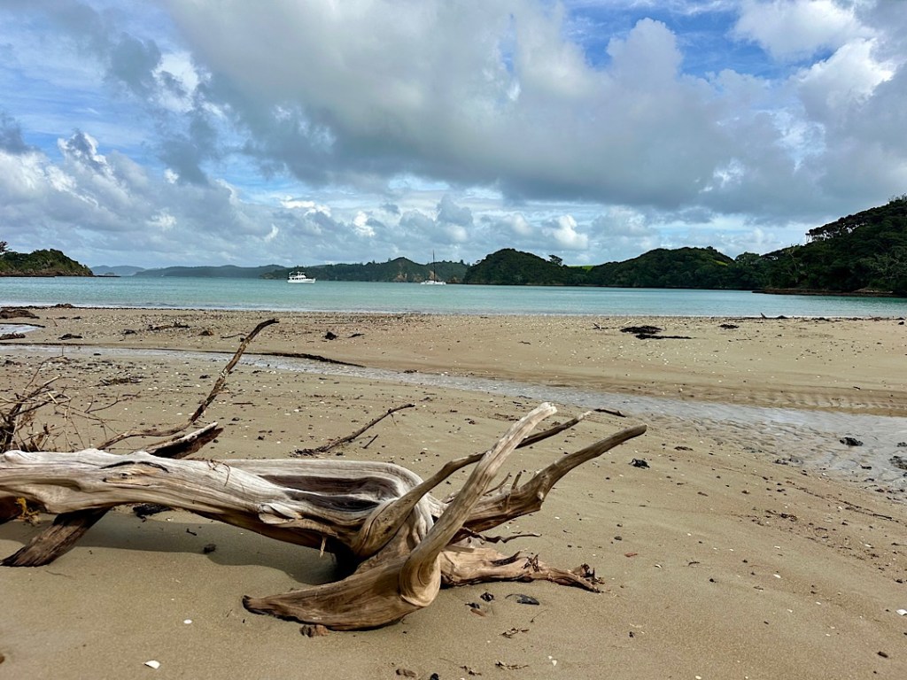 Cape Brett markiert zugleich den Eingang in die Bay of Islands, die Halbinsel des Caps ist die Nordostspitze der Bucht. Wir biegen also am Mammut links ab. Unser erstes Ziel in der BOI (Bay of Islands, viele Kiwis lieben offenbar Abkürzungen) ist gleich deren größte Insel: Urupukapuka (die Maorí ziehen den Abkürzungen offenbar Dopplungen vor).