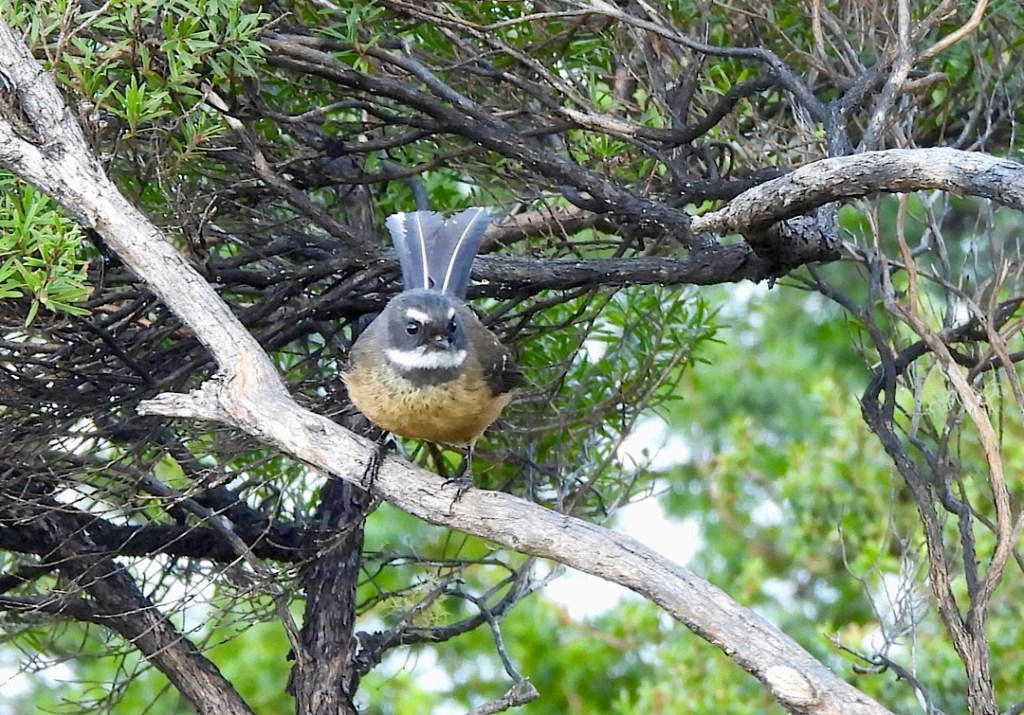 Zudem weitere endemische Vogelarten wie die meisenartigen Neuseeland-Fantails (Pīwakawaka) und die neuseeländischen Austerfischer.