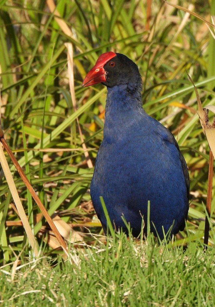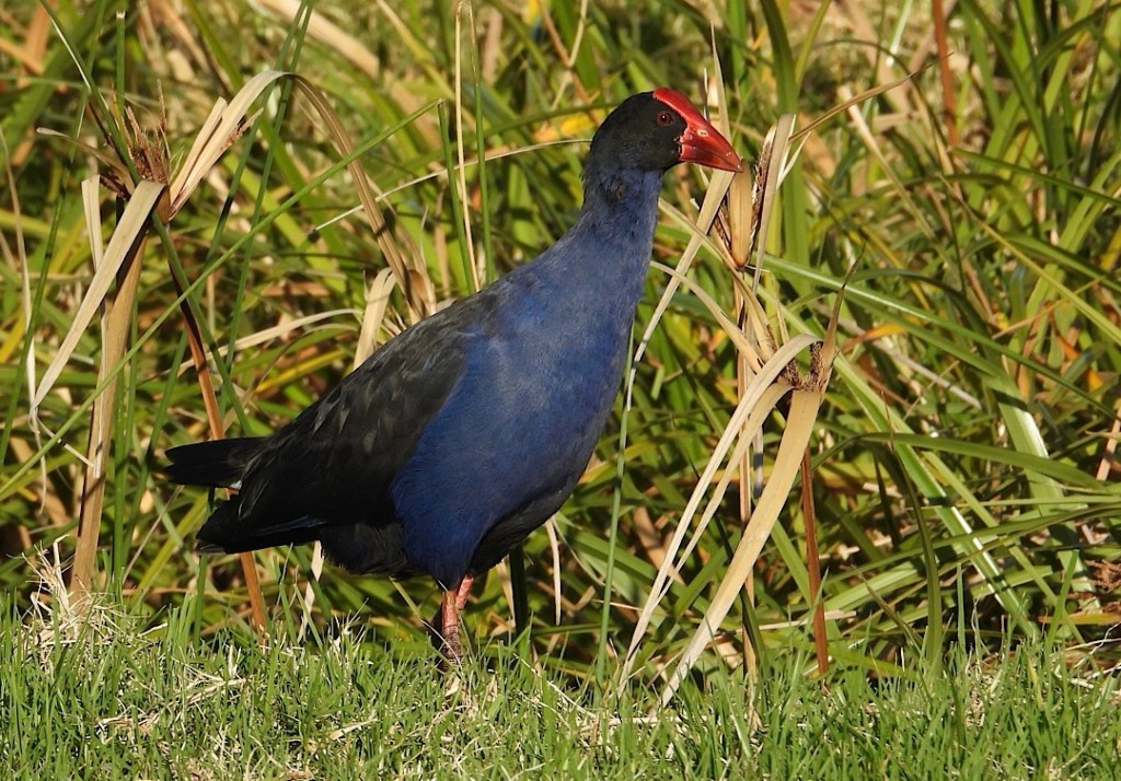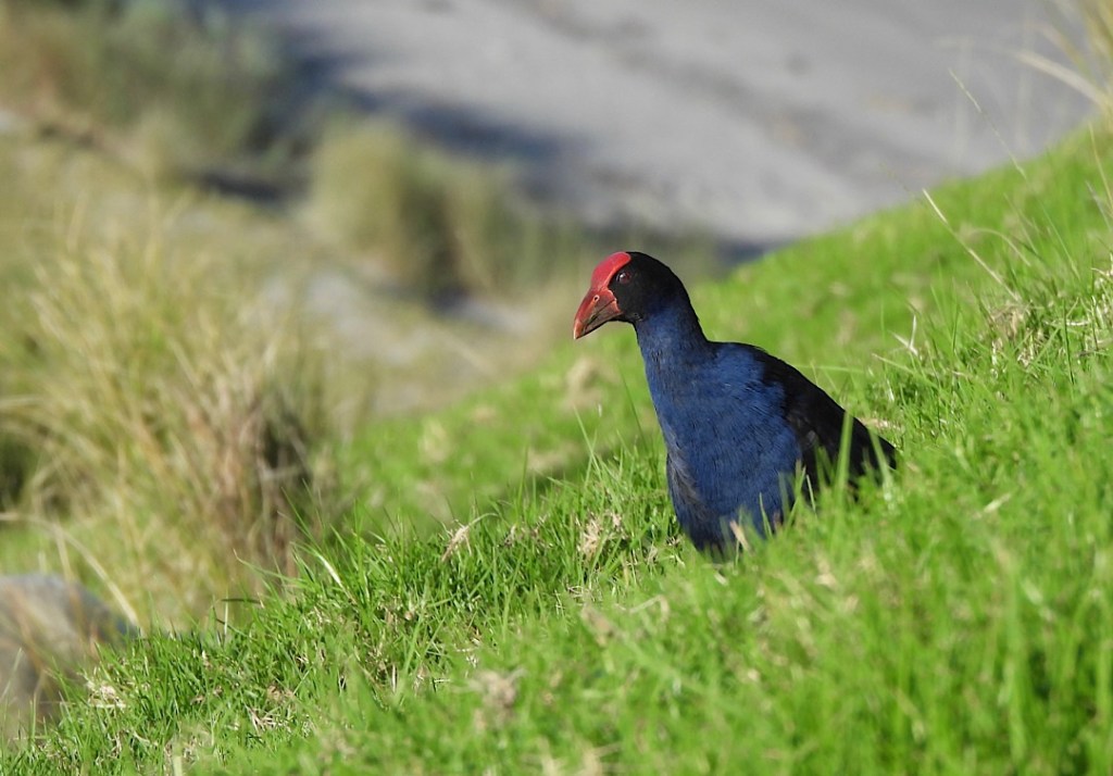Und natürlich, im weichen Abendlich besonders farbenfroh, die neuseeländischen Purpurhühner, hier Pūkeko genannt.