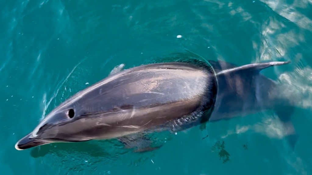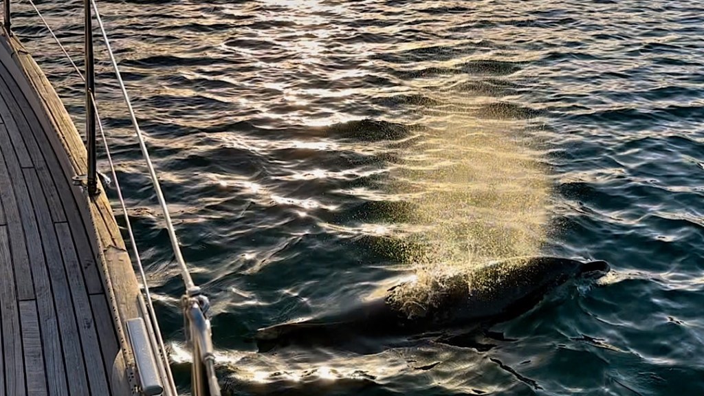Delfine kommen in unsere Ankerbucht, erjagen sich ihr Abendbrot und spielen anschließend ganz dicht um die Boote herum.