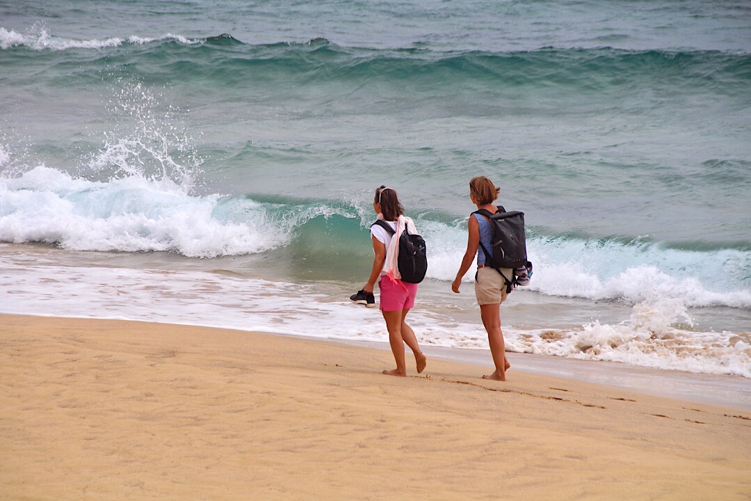 Also die Wanderschuhe an und los? Nein, natürlich nicht. Erstmal müssen wir ein ganzes Stück durch den losen Dünensand, das geht besser barfuß.