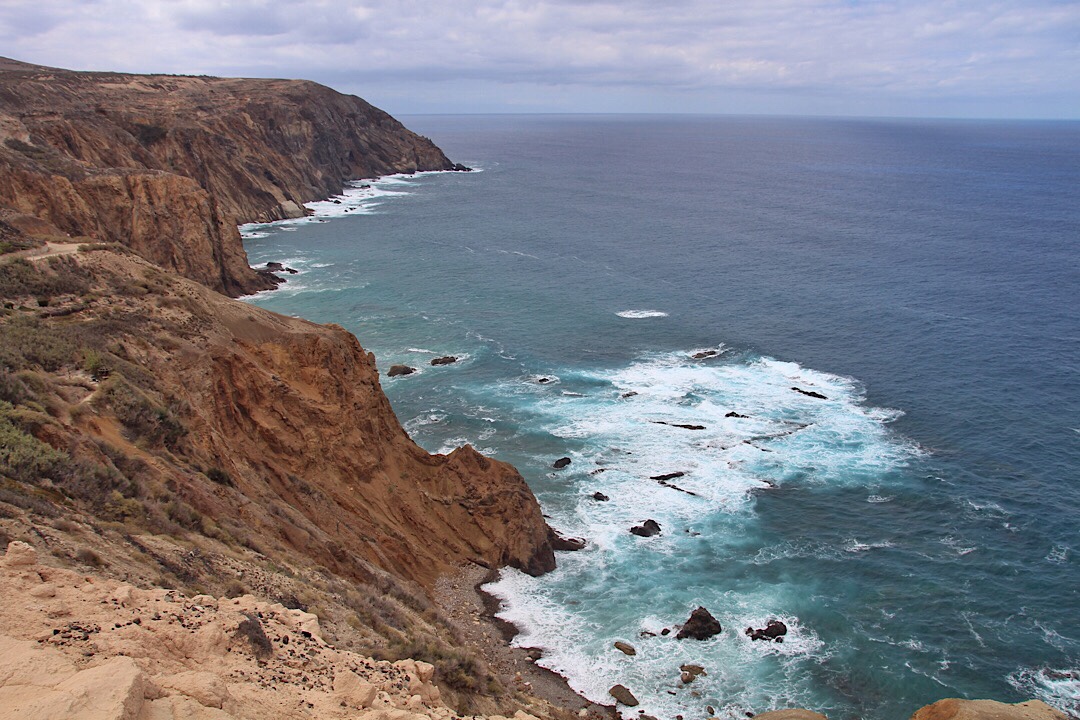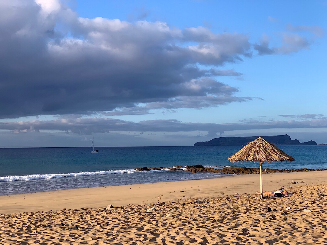 Aber schon jetzt zeigt sich, warum der gut 170 m hohe Berg nach einer Farbe benannt ist: die vom Meer angeknabberte Südseite präsentiert sich in einem Mix aus gelbem und rotem Tuffgestein und scheint gerade bei diesem Wetter manchmal regelrecht zu leuchten. Und was für ein Kontrast mit dem gelegentlich knalligen Blau des Himmels oder des Meeres, dem hellen Sand von sowohl Strand als auch manchen Dünen und dem Türkis der flacheren Buchten.