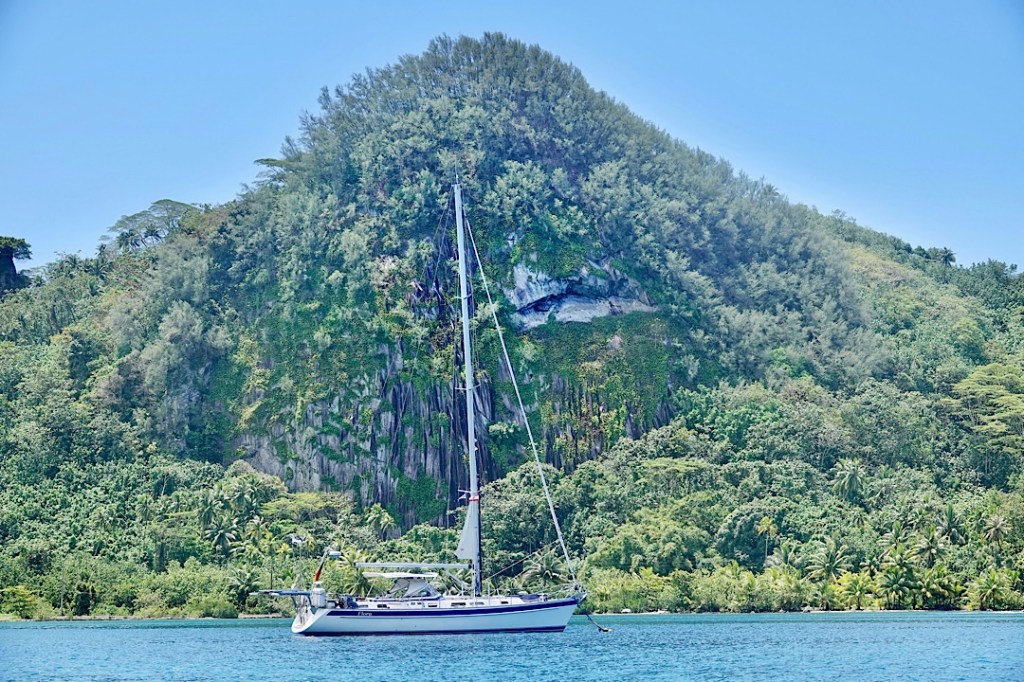 Wir segeln von Moorea nach Raiatea. 90 Seemeilen, also ein Übernacht-Törn. Um 15.00 gehen wir ankerauf in Vaipahu, am nächsten Morgen um 09.00 Uhr nehmen wir in der tiefen Bucht von Hotopuu eine Mooringboje direkt neben der Easy One.