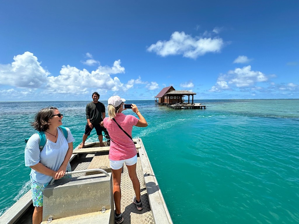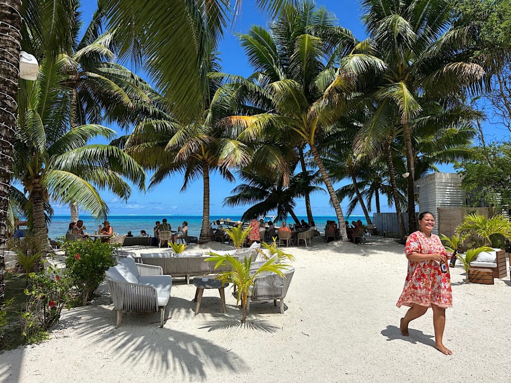 Danach geht’s mit den Dinghies zurück zum Opoa Beach Hotel für unser Mittagessen am Strand. Als wir ankommen, haben wir das Restaurant noch ganz für uns.