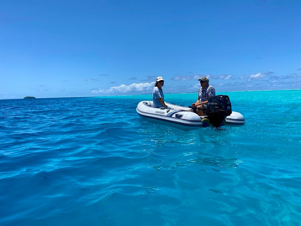 Dort liegen wir hinter dem Riff geschützt auf komfortablen 6 m Wassertiefe mitten im Türkis. Außerdem ist es von hier nur eine kurze Dinghyfahrt hinüber nach Utoroa. Wir versorgen uns mit frischen Lebensmitteln, finden selbst Mozzarella (unsere Basilikumpflanze aus Moorea gedeiht an Bord erstaunlich gut).