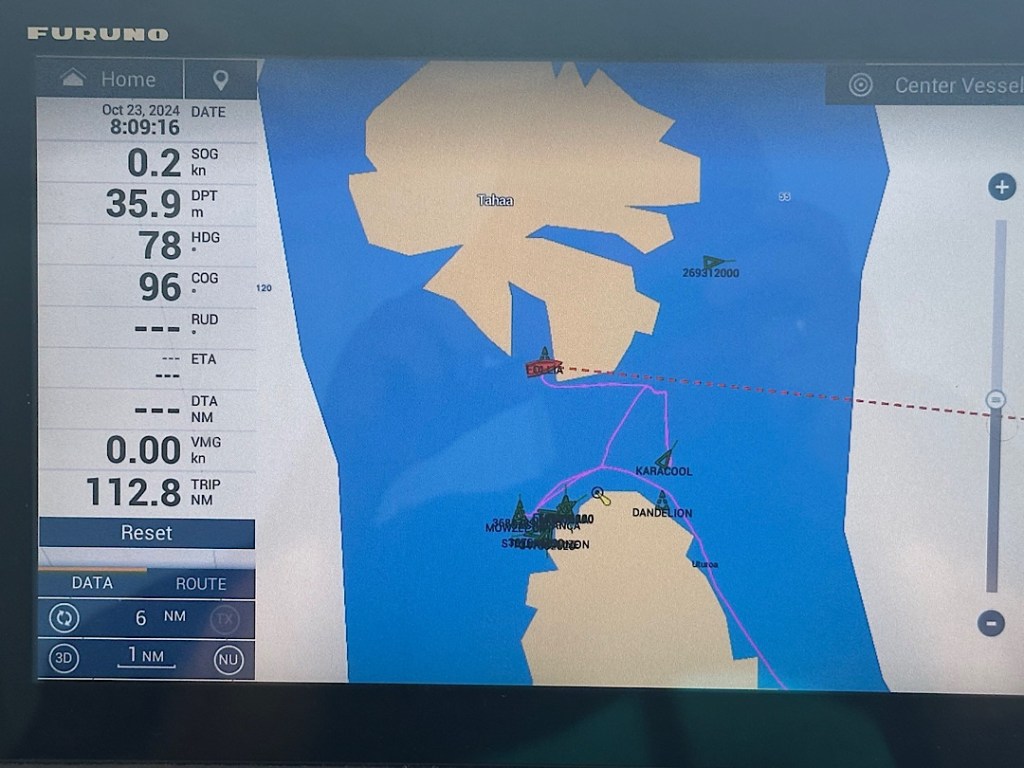 Gemeinsam mit der Easy One und der Diamond Sea verholen wir nördlich um die Insel herum auf die Ostseite von Taha’a. Der Ankerplatz direkt am Pass Toahotu ist hinreißend schön.