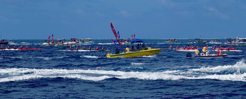 Das scheint den Besatzungen der 6-Sitzer-Auslegerkanus allerdings nicht viel auszumachen, schließlich müssen sie auch mit den teils ruppigen Meeresbedingungen bei den zudem viel längeren Etappen außerhalb der Lagune klar kommen.