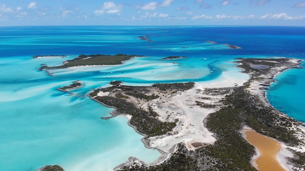 Und so können wir uns durch die schmale Rinne und das Flachwassergewirr wieder auf den Weg machen und weitere Inseln der Exuma erkunden. Mit unserem Tiefgang geht es erst einmal außen herum weiter.