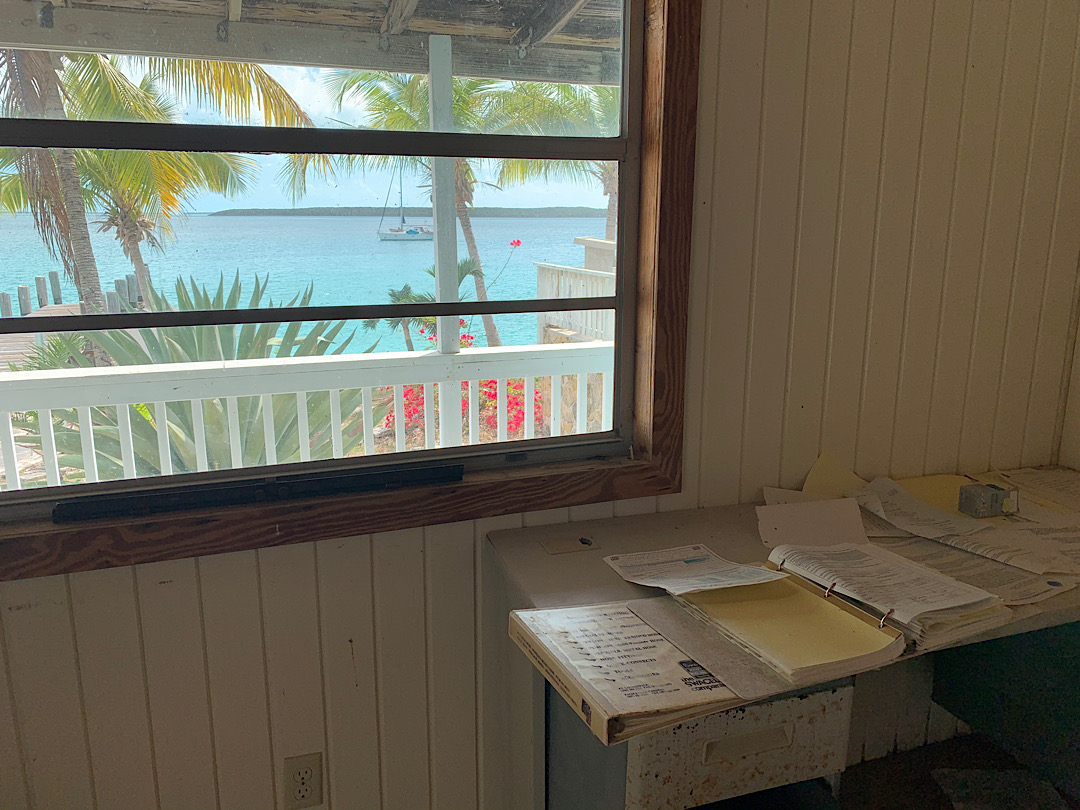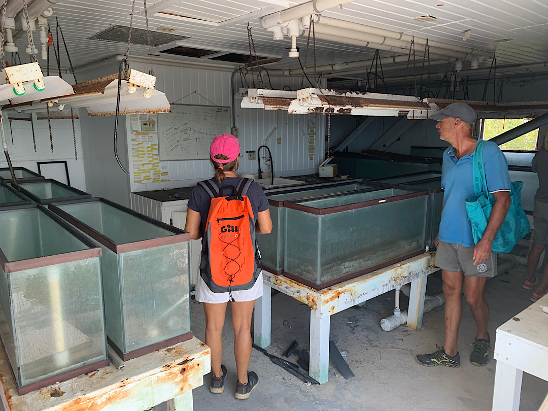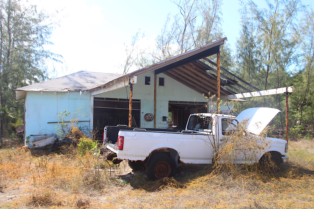 Das „Perry Institute for Marine Science“ hatte hier ein groß angelegtes Forschungszentrum errichtet, quasi ein ganzes Dorf mit eigenem Flugplatz und Hangar, Slipbahn und Bootsanleger, Wasserwerk, Labors, Werkstätten, diversen Seewasserbecken und Forschungsaquarien. Heute steht alles leer, wobei es wirkt, als wäre das „Science Center“ urplötzlich und Hals über Kopf verlassen worden. Akten liegen noch herum, Gasflaschen und Tanks verrosten, ein Pickup steht mit offener Motorhaube vor der Werkstatt. Computer und Batterien für deren unterbrechungsfreie Stromversorgung stehen in einer Ecke. Die Landebahn (Runway) ist in Teilen zugewuchert, einige Häuser sind ziemlich verfallen, andere noch recht intakt.
