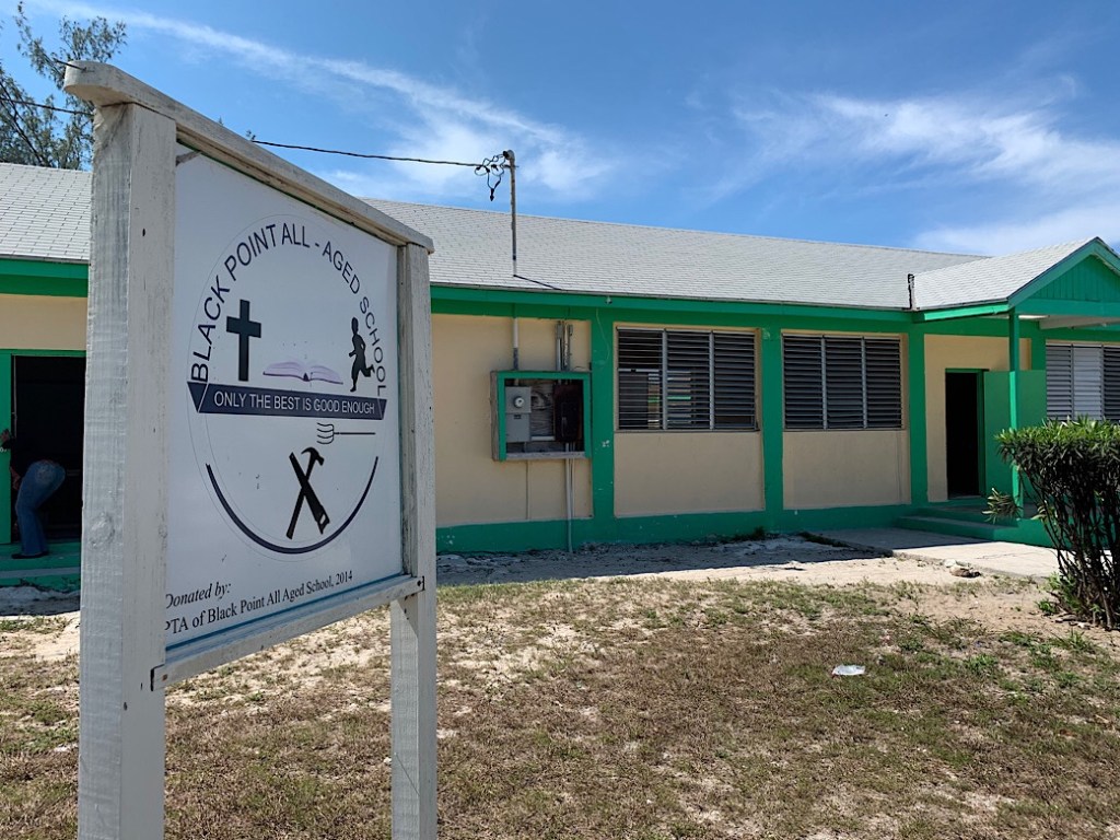 Die vielen pastellfarbenen Häuser auf den Bahamas passen perfekt zu den hellen, zarten Tönen die auch die Natur hier – vor allem im flachen Wasser – hervorbringt. Aber erst nachdem wir schon einige Zeit hier sind haben wir erkannt, dass sie zumindest bei den öffentlichen Gebäuden tatsächlich einem eigenen Code entsprechen. Es gibt wohl auch Ausnahmen, aber mit schöner Regelmäßigkeit sind Schulen gelb gestrichen, oft mit (gerne mint-)grüner Kontrastierung. So auch hier im Black Point Settlement auf Great Guana Cay, ebenso wie zuvor z.B. auf Little Farmers Cay.