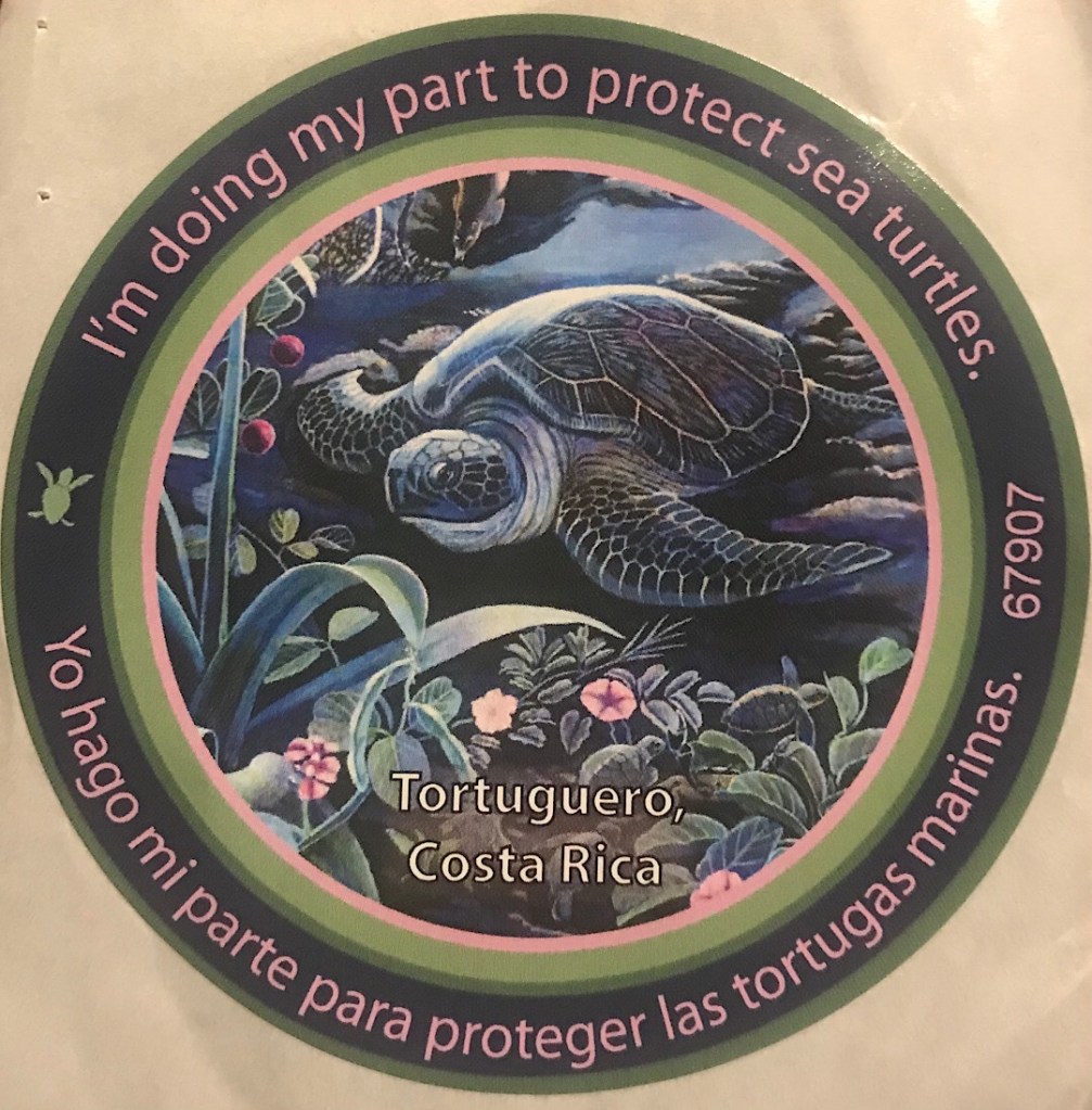 Ein besonderes Gimmik verbirgt sich in den kleinen, nur als Scherenschnitt gezeigten Schildkröten unter dem Hai: sie zeigen in miniaturkleinen Buchstaben das sich wiederholende Motto „Pura Vida“!
