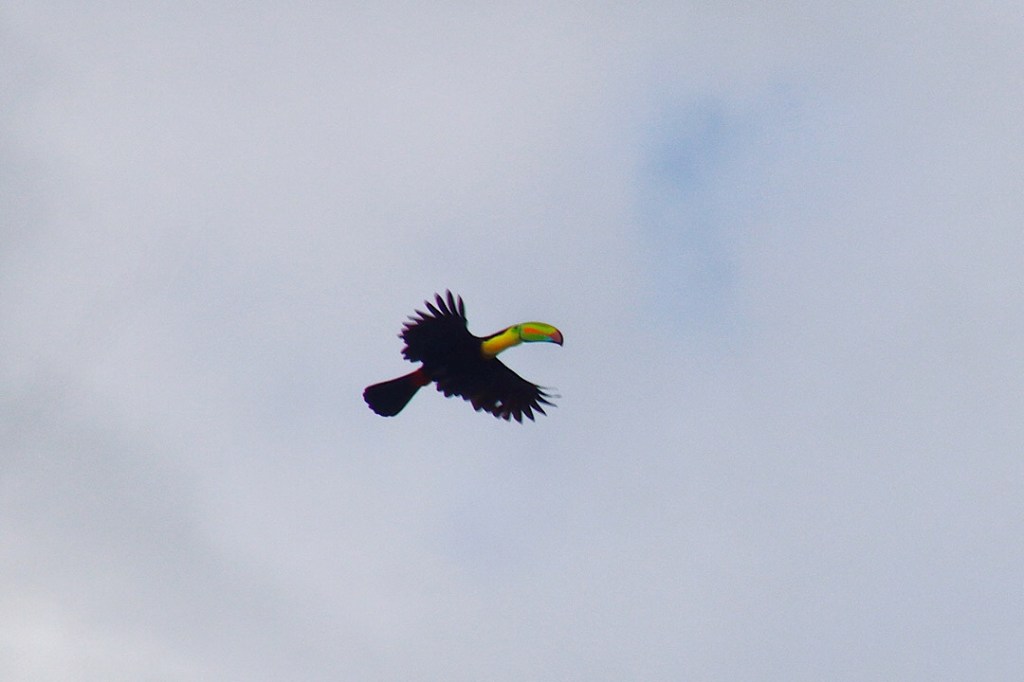 Und natürlich auch wieder eine Menge Vögel, darunter mehrere Regenbogentukane, die direkt über uns hinwegfliegen, sowie die ebenso wunderschönen Grünen Aras.