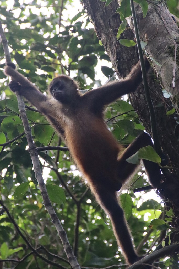 Außerdem bekommen wir nach den Kapuzineraffen bei der Maquenque Lodge jetzt erstmals auch die bisher nur gehörten Mantel-Brüllaffen zu sehen, zudem zusätzlich auch noch die quirligen Geoffroy-Klammeraffen.