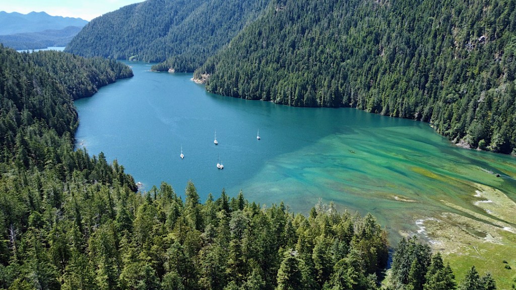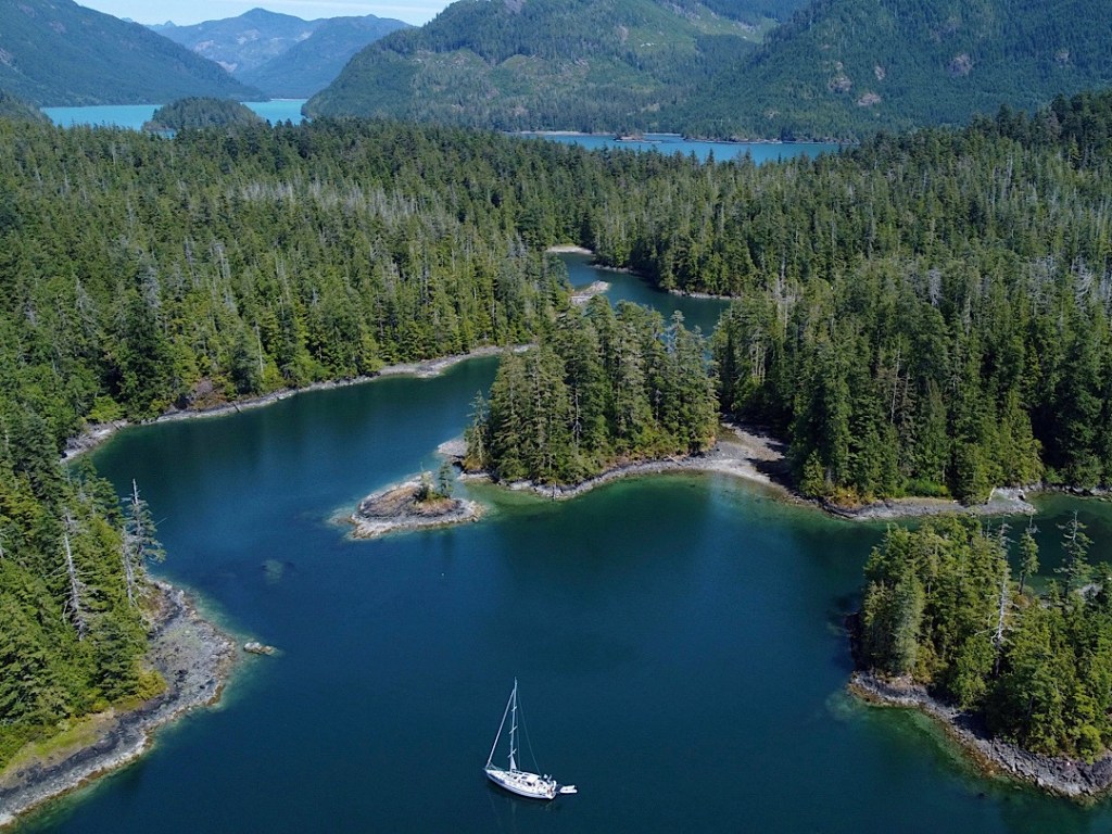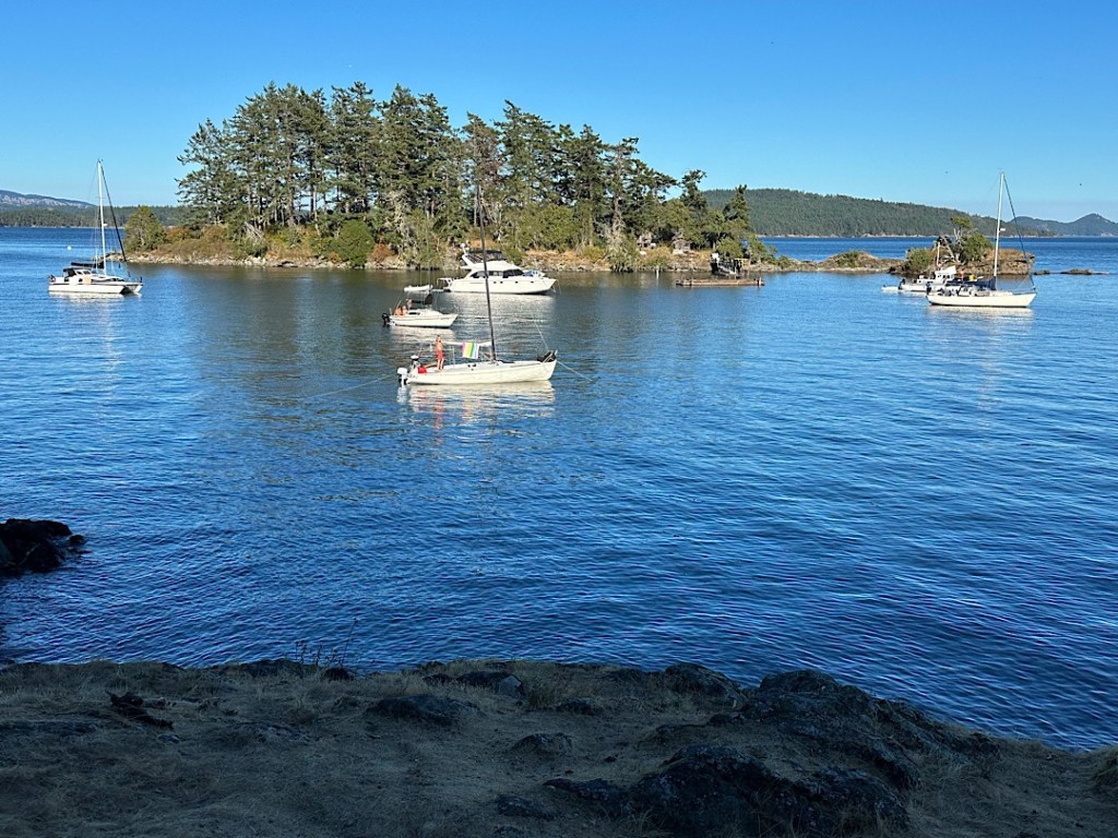 Von Saturna Island aus segeln wir nach Portland Island. Als wir ankommen, ist der im Törnführer empfohlene aber ohnehin ziemlich flache Ankerplatz in der Princess Bay bereits gut belegt.