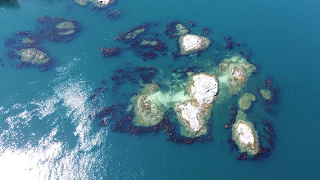 Am nächsten Tag motoren wir bei Windstille aus den Gulf Islands hinaus, passieren die kargen Chatham Islands bei mitsetzender Tide …