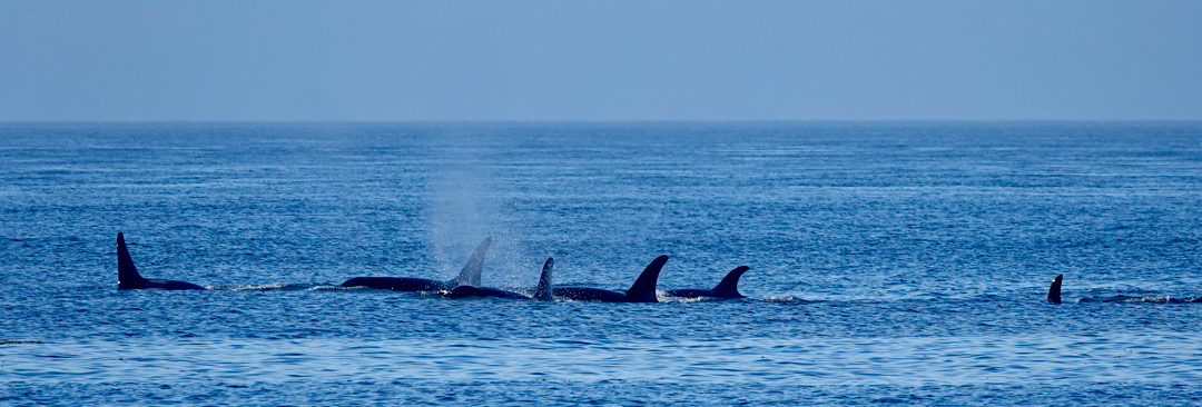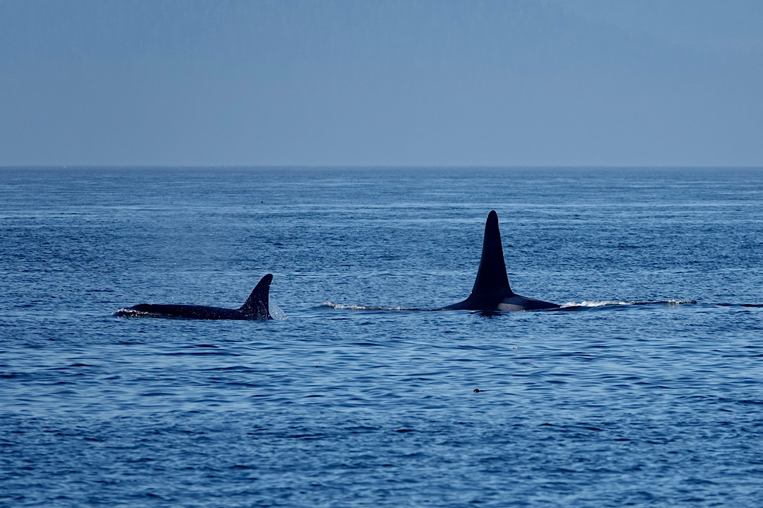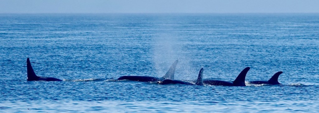 Trotz der vier Gruppen: nur insgesamt drei Mal haben wir bisher Orcas gesehen, allerdings jeweils ziemlich kurz und aus großer Entfernung. Es waren vermutlich jeweils Northern Residents.