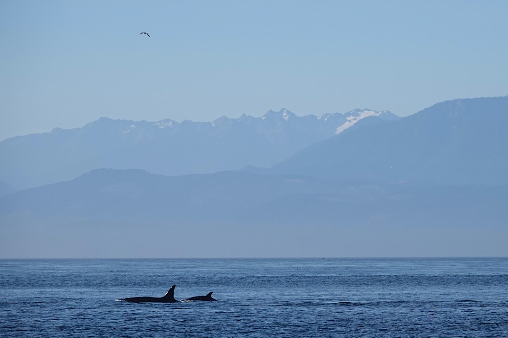 Die Chance in British Columbia Orcas zu sehen, ist eigentlich ziemlich groß. Vier verschiedene Populationen gibt es hier. Erstaunlicherweise mischen sie sich nicht, obwohl sich ihre Verbreitungsgebiete überlagern. Sie haben unterschiedliche Verhaltens- und Ernährungsweisen, Forscher haben zudem für die jeweilige Population unterschiedliche Laute und Kommunikationsfolgen bei diesen intelligenten Tieren erkannt und gehen von regelrecht verschiedenen Sprachen aus.