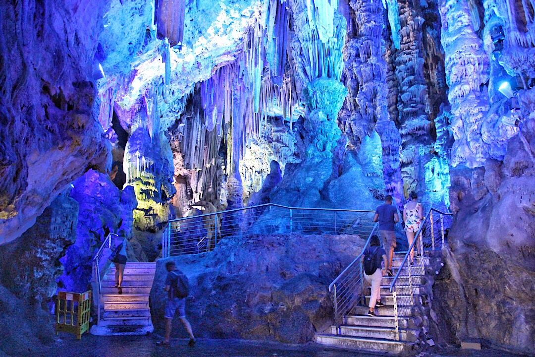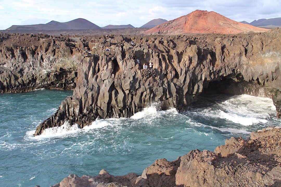 Zunächst aber beschränkt sich das Grün weitestgehend auf einige Plantagen beim Ort Mogán und – neben wenigen Bäumen – auf leuchtendes Türkis im Fels beim Pass oberhalb des Dorfes.