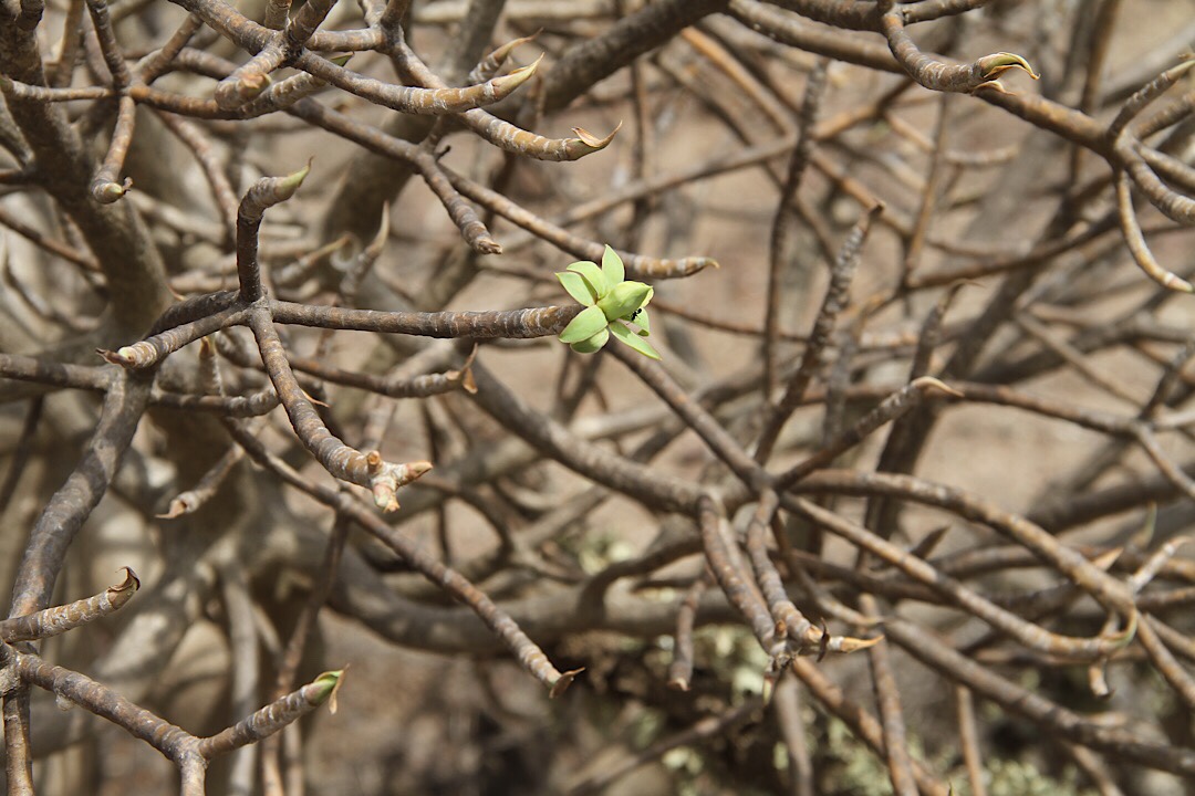 Immerhin können wir neben jetzt trockenem, aber offensichtlich lebenswilligem Strauchwerk auch viele der von der Kanarenregierung zu pflanzlichen Natursymbolen Gran Canarias bestimmten Kanaren-Wolfsmilch sehen.