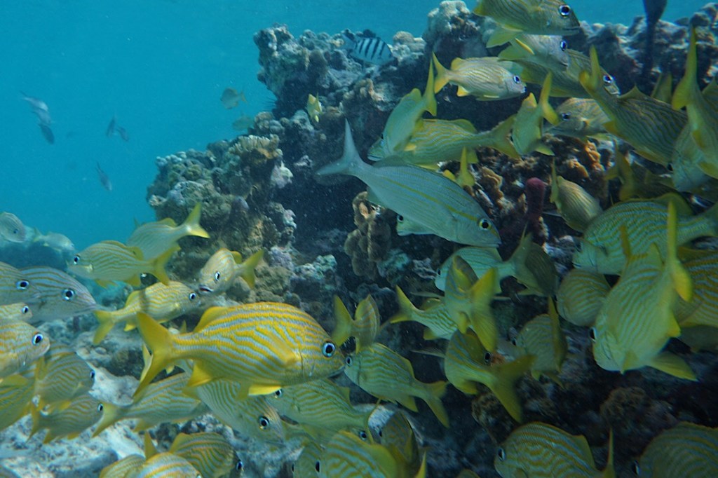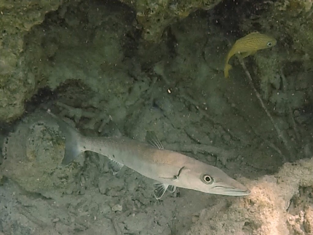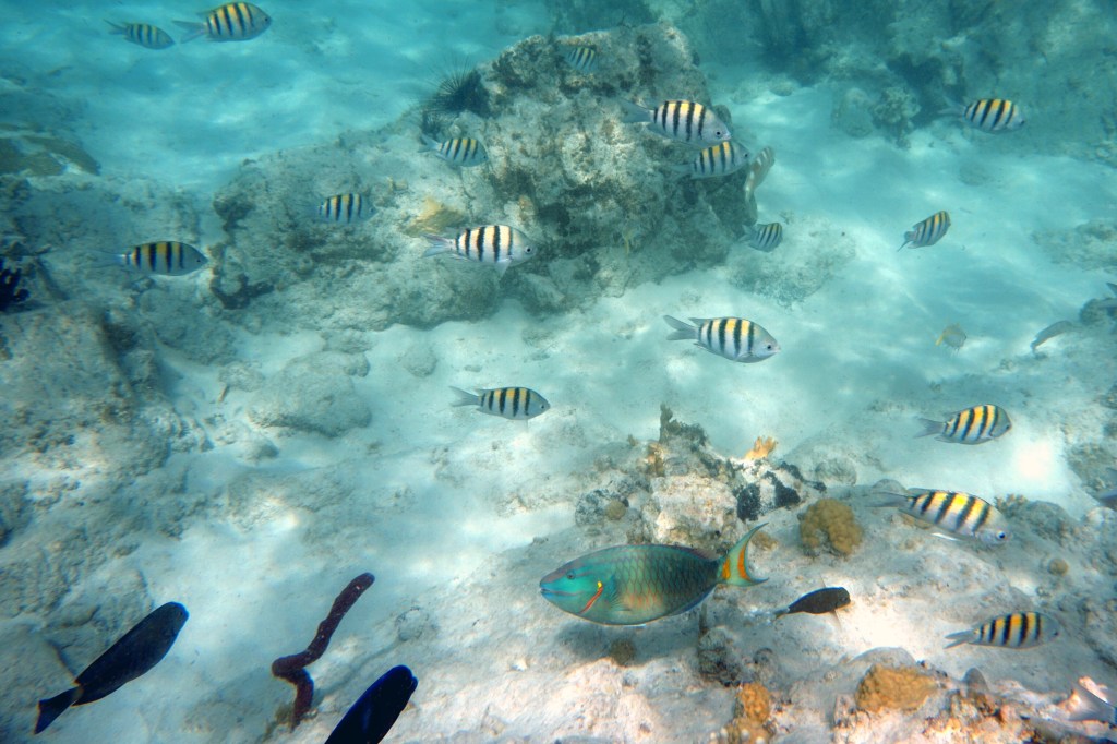 Obwohl, eigentlich auch wieder nicht, denn zwar findet sich am Strand vom einem Leguan nur die verräterische Spur, aber beim Schnorcheln haben wir dann doch eine weitere tierische Begegnung.