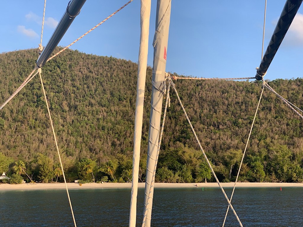 An unserem neuen Ankerplatz in der schönen und geschützten Magens Bay im Norden von St. Thomas hat sich der Anker diesmal wieder ordentlich in den Sandgrund gegraben. So soll das sein!