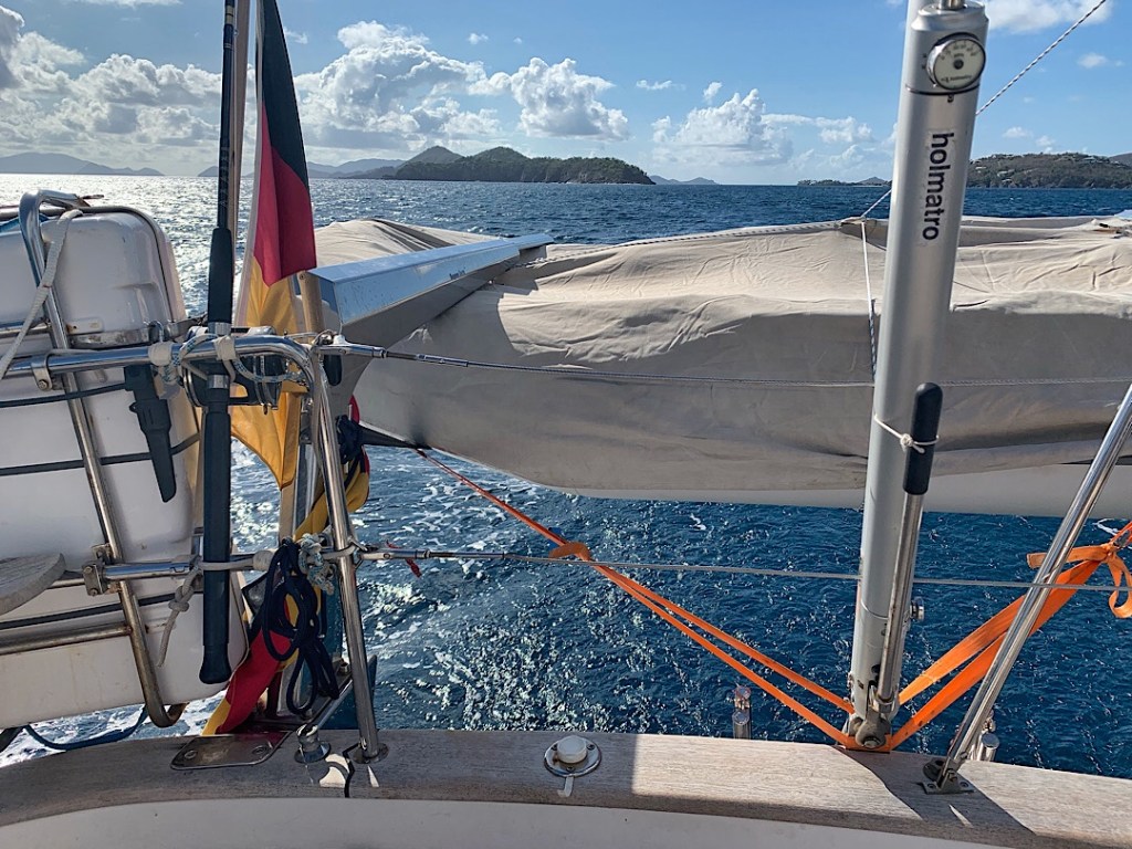 Was für ein Abschied von den USVI. Wir setzen die Passatsegel, gleiten durch den Sund zwischen St. Thomas und Hans-Lollik-Island. Ein Katamaran kreuzt uns entgegen, es ist die Vairea mit Martina und Daniel, von denen wir uns also doch noch winkend und rufend verabschieden können.
