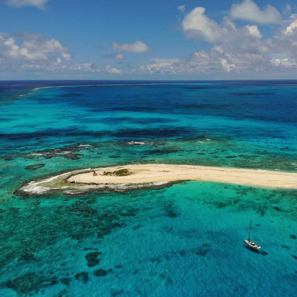 Nur tiefblaues Wasser heißt auch, dass wir selbst die Turks und Caicos Inseln nicht sehen können, obwohl wir nur in gut 12 sm Entfernung an ihnen vorbeifahren. Nachts sehen wir allerdings den Lichtschein von Grand Turk und am Tag – tja, da sehen wir ein besonderes Phänomen. Wir biegen gegen Mittag an der Nordspitze der Caicos-Inseln nach Backbord in die Caicos Passage ab. Südlich der Inseln erstreckt sich über rund 50 km in Nord-Süd- und in Ost-West-Richtung die nur 2 bis 5 m tiefe Caicos-Bank. Wohlgemerkt: rundherum ist es überall über 2.000 m tief! Über diesem Flachwassergebiet heizt sich die Luft so auf, dass sie schnell aufsteigt und ein imposantes Wolkengebilde entstehen lässt. Das beeindruckendste daran ist aber, dass die Wolken an der Unterseite türkisblau erscheinen, weil das Leuchten des Flachwassers sich an ihnen spiegelt. Ein unfassbarer Anblick.