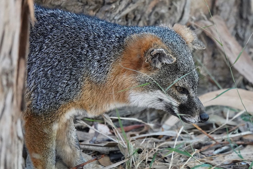 Zu unserem Glück bleibt das nicht die einzige tierische Begegnung. Tatsächlich erfüllt sich unsere heimliche Hoffnung, wir sehen mehrere Kalifornische Insel-Graufüchse. Diese sehr kleine Fuchsart gibt’s nur hier auf den Channel Islands und auch hier war ihr Bestand um die Jahrtausendwende akut bedroht, auf Santa Cruz war der Bestand in nur 5 Jahren um 95 % eingebrochen. (Wer sich für eine Kurzfassung der ökologischen Zusammenhänge dazu interessiert: hier klicken, S.29.) Inzwischen erholt sich die Population dank erheblicher Anstrengungen der Naturschützer wieder. Erwachsene Tiere erreichen ungefähr die Größe einer Hauskatze, sind dabei mit unter 2 Kilogramm aber nicht mal halb so schwer, wobei die Unterart auf Santa Cruz auch die kleinste ist.