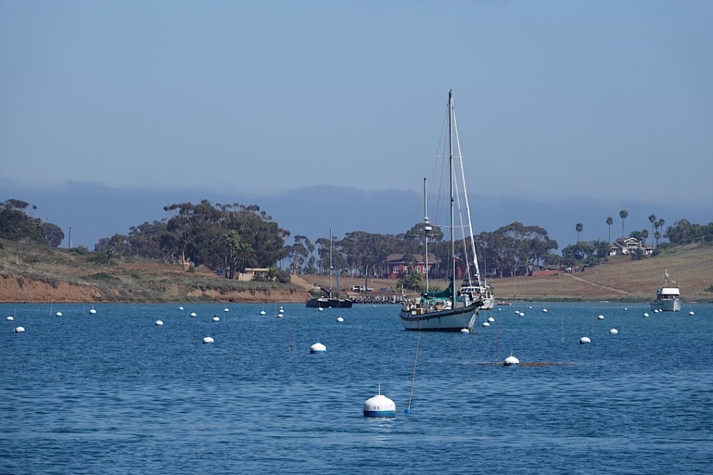 Eine gute Entscheidung, denn auf der Fahrt lichten sich die Nebelbänke und Avalon liegt dann in strahlendem Sonnenschein vor uns. In Avalon werden die Bojen von der Kommune verwaltet und sind grundsätzlich mit 63$ ebenfalls recht happig bepreist. Aber – anders als in Two Harbors – gilt hier seit dem 15.10. das Nachsaison-Angebot: zwei Nächte zahlen, eine Woche bleiben. Das lässt den Preis dann schon ganz anders erscheinen, insbesondere wenn man von der geschützten Bucht die weiter draußen vor Anker liegenden Boote beim Stepptanz auf den Wellen beobachtet.