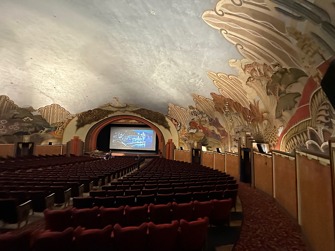 Eine weitere Besonderheit in Avalon ist das markante „Catalina Casino“ am Beginn der Nordmole. Der 1929 fertiggestellte markante Rundbau, außen mit klassischen Anleihen, ist innen im Art Deco Stil ausgestattet. Er war nie ein Spielkasino, sondern birgt im Erdgeschoss ein 1.500 Plätze fassendes Theater/Kino und darüber einen für 6.000 Tänzer ausgelegten Ballsaal. Derzeit findet dort ein Jazz-Festival statt, aber die Karten sind schwer zu bekommen. Im Kino aber sind wir – gemeinsam mit ein paar Bootsnachbarn – fast die einzigen Gäste.