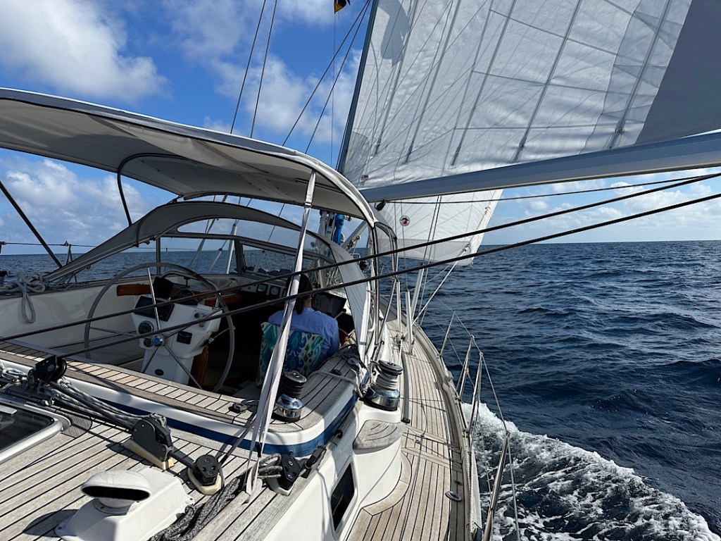 … immerhin waren sieben von zwölf Flügeln angebrochen, aber sich gegen seinen Austausch doch ziemlich hartnäckig gewehrt hat und ähnlicher Technik-Kleinkram. Und außerdem haben wir eben auch viel Zeit für uns, lesen uns zum Beispiel das Buch “Die Kraft der Entscheidungen” vor, das unsere österreichischen Segelfreunde Doris und Christian über ihre einjährige Auszeit auf Ihrer Dacing Pearl geschrieben haben. Es spiegelt für uns – neben wunderbar aufmerksam beobachteten Veränderungen gegenüber dem Landleben – auch besonders schön den Zauber des Anfangs unserer Langfahrt wieder.