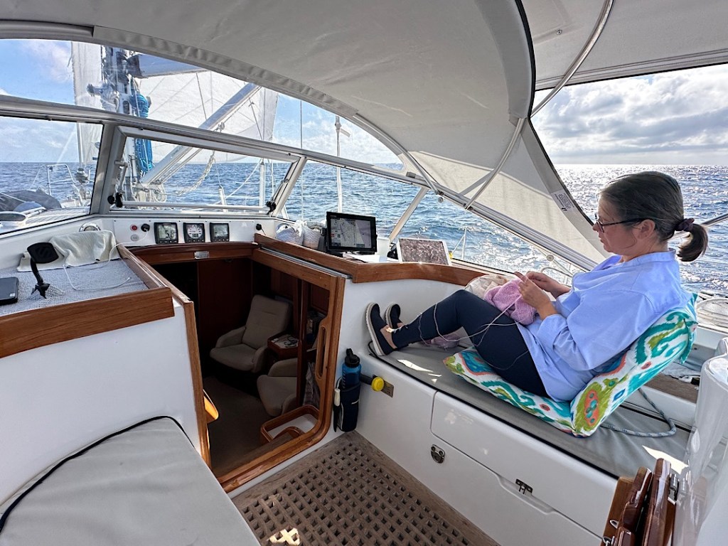 Auch an Bord sind wir nicht untätig. Wiebke hat ihr Jahresprojekt abgeschlossen: ihren Kolding-Schal: