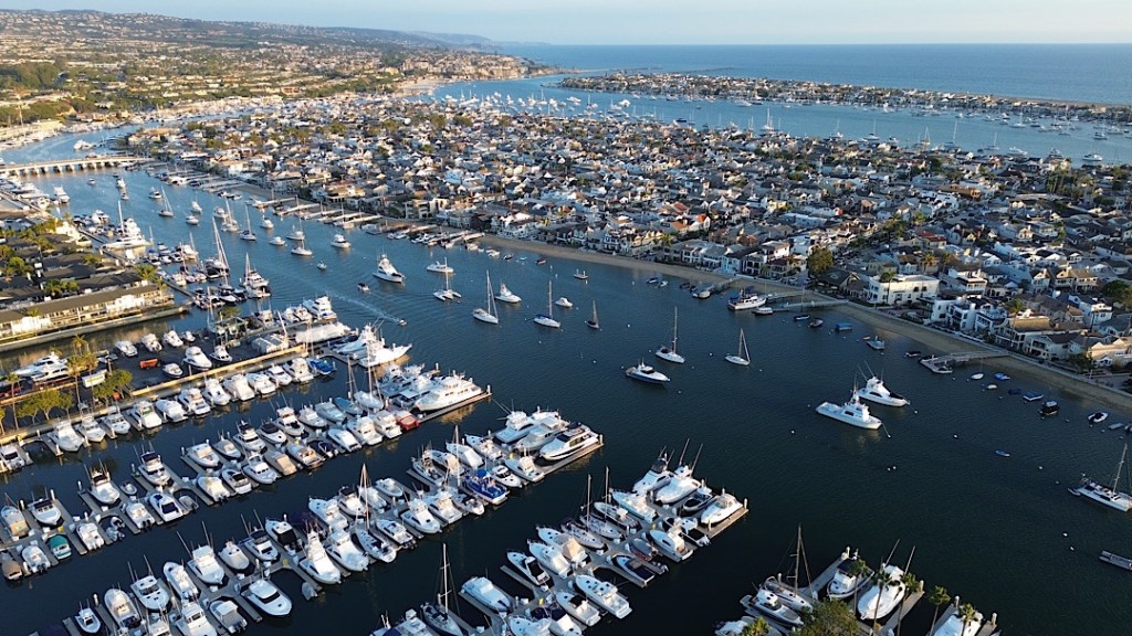 Unser Ziel ist Newport Beach, zwischen Los Angeles und San Diego gelegen. Viel wissen wir nicht über die Stadt, nur, dass sie einen gut geschützten Ankerplatz bietet und man mit dem Dinghy gut die vielen Häuser mit Bootsstegen davor bewundern kann. Das machen wir dann auch. Und sind ziemlich beeindruckt. Ganze Stadtteile im Mündungsgebiet des San Diego Creek sind Inseln, etwa Balboa Island und Lido Isle, daneben gibt es eine Vielzahl weiterer kleiner Inseln und Halbinseln. Es ist unfassbar, wie viele Boote hier liegen. An den Stegen vor den Häusern und Villen, in mehreren Häfen und vor allem in riesigen Bojenfeldern. Und mittendrin: unser Ankerplatz.